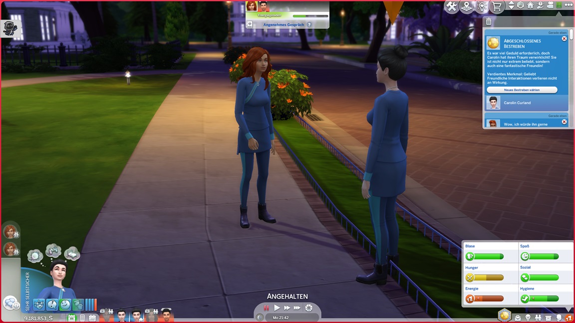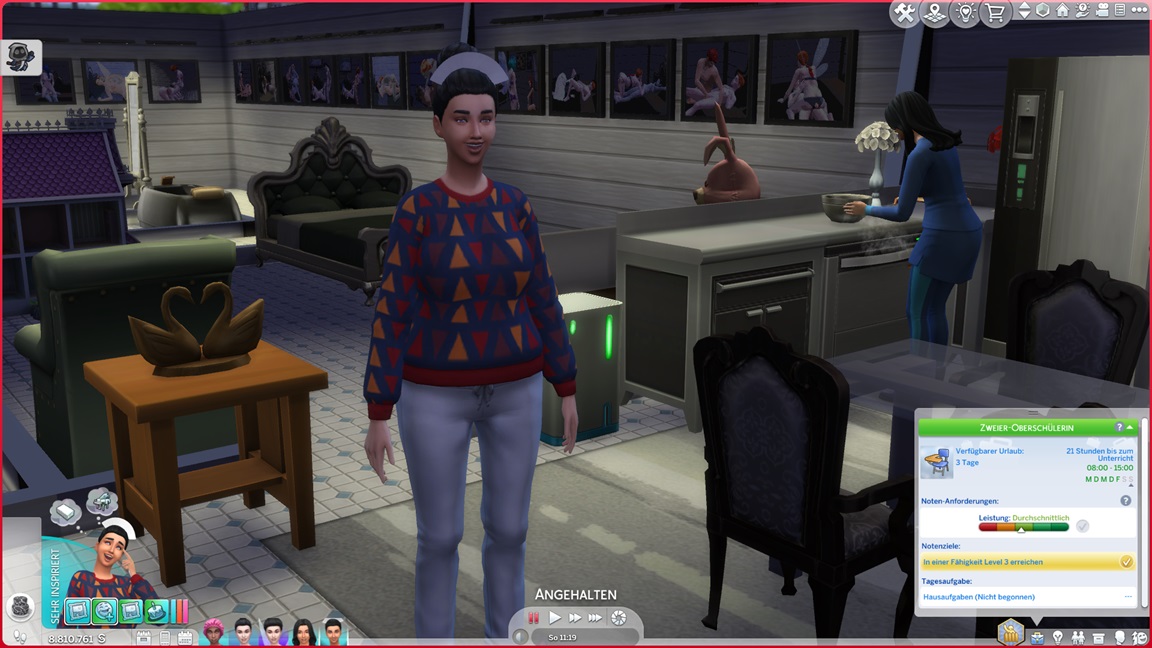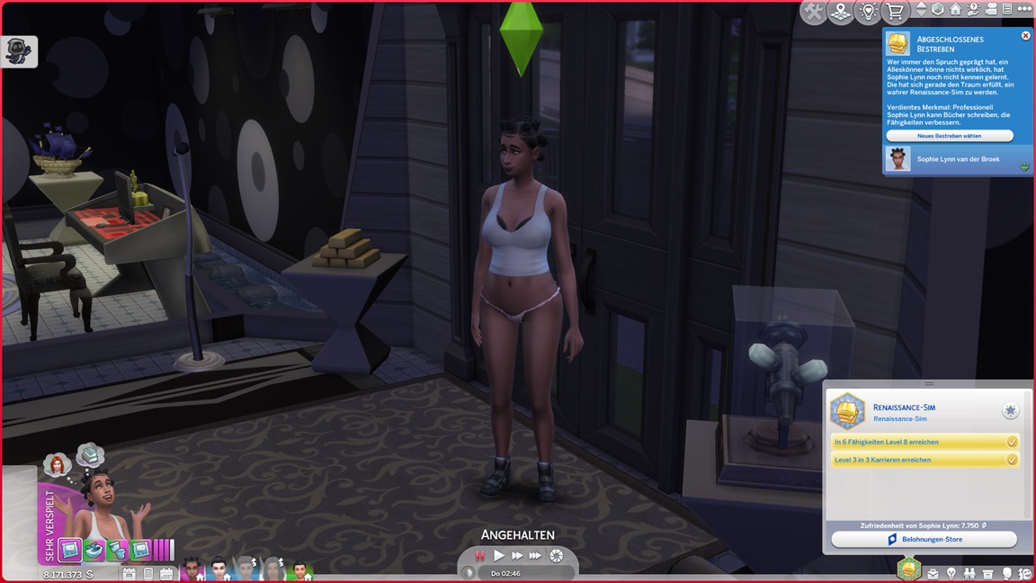 Sie fährt mit dem Renaissance-Sim fort, schließt diesen nach einem Jobwechsel ab...