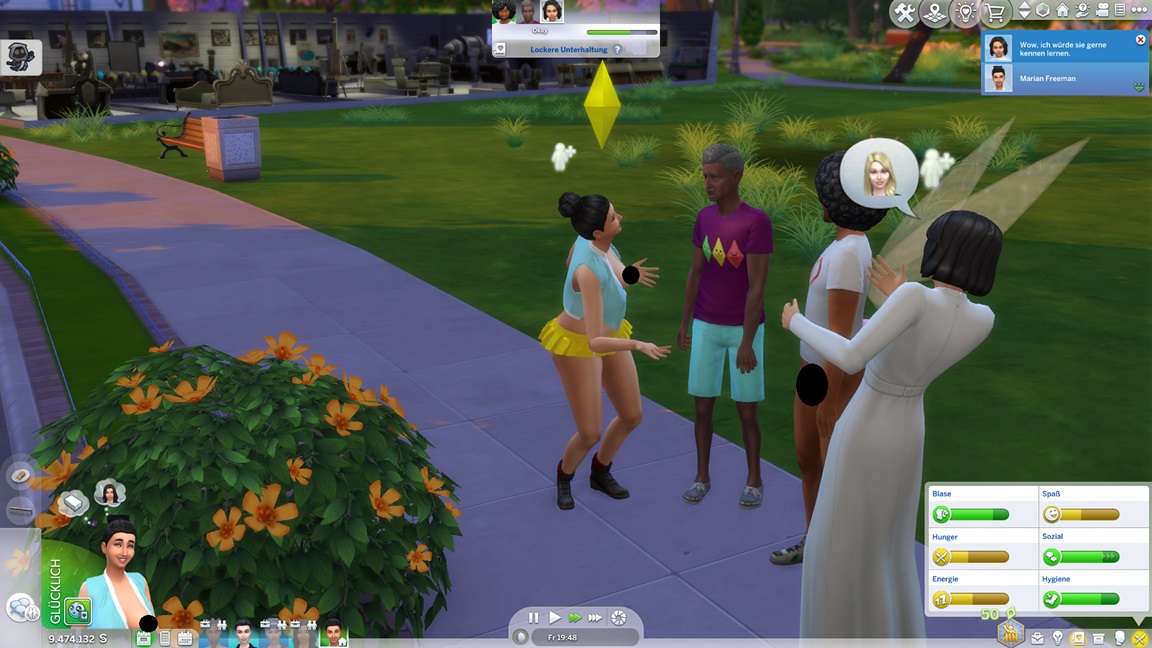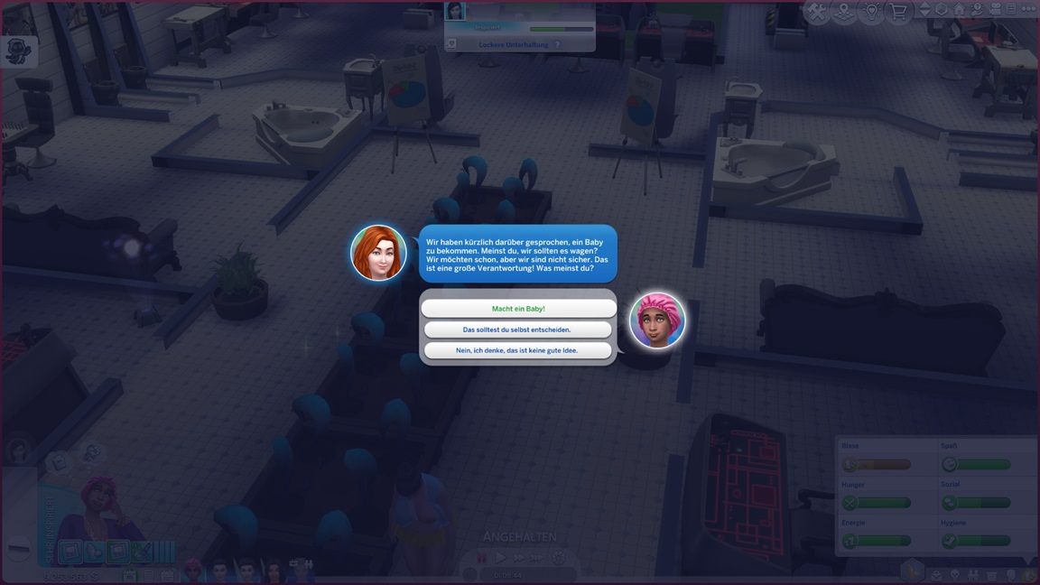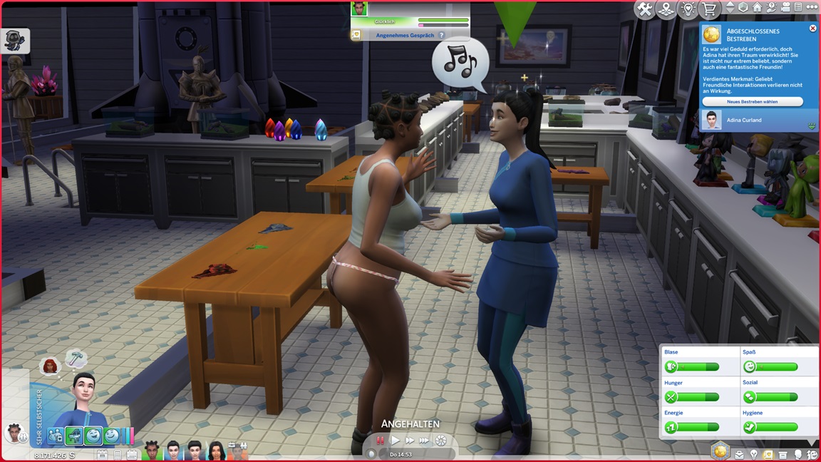 Sie kann (neben der tanzenden Adina) jubeln und fährt mit Sozial fort.