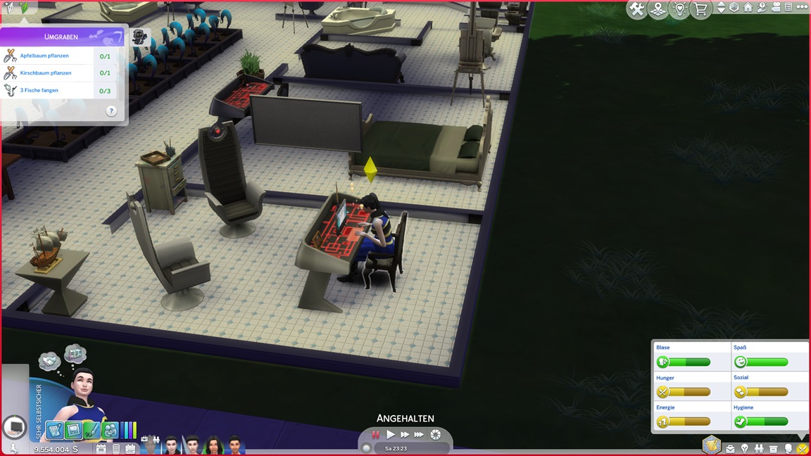 Der Pflanzzweig endet da ebenso unspektakulär wie jener der ersten Episode, nämlich nach dem Pflanzen eines Kirsch- und eines Apfelbaums... also theoretisch, weil im Maschinenraum dafür der Platz fehlt, aber das Spiel lässt es trotzdem gelten.