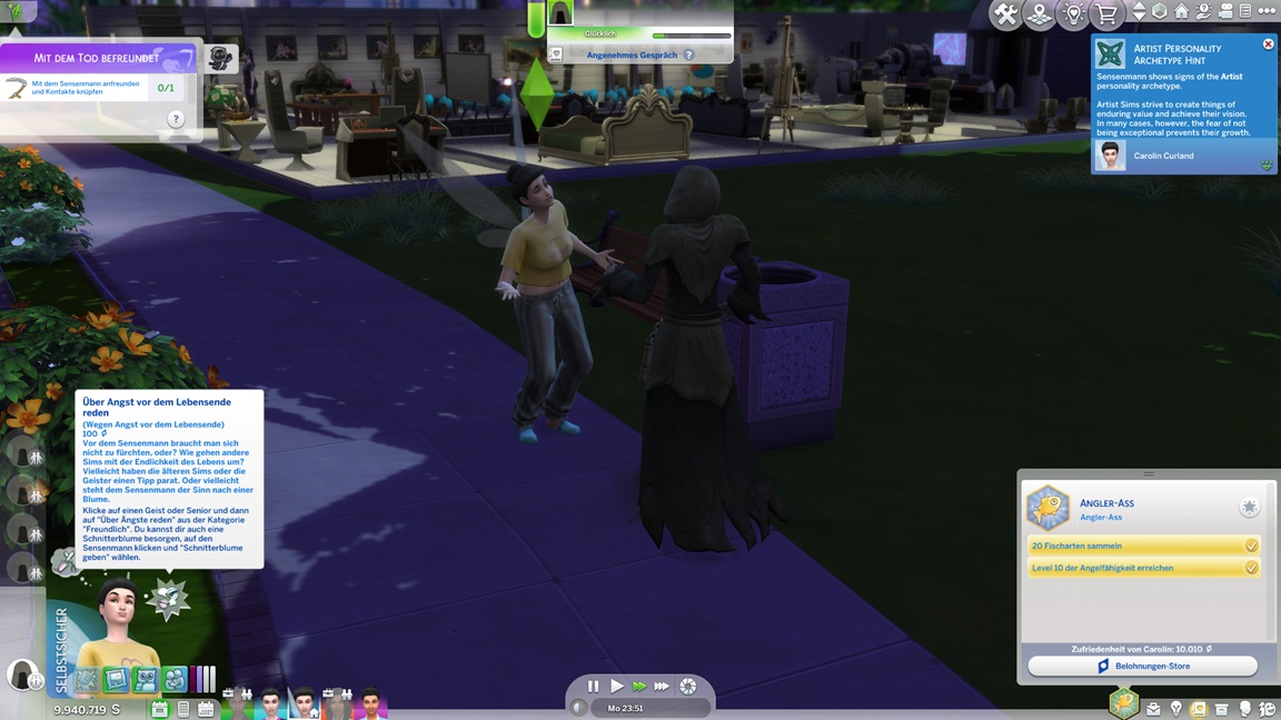 Passend zu diesen Herausforderungen wechselt Maja auf Gärtnern (da sie eh auf Beförderungen wartet) und Carolin auf Angeln.