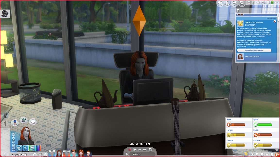 Marcian wird derweil davon ausgebremst, dass der Garten kaum Pflege benötigt. Die Schnitterblumensträucher tragen Blüte.