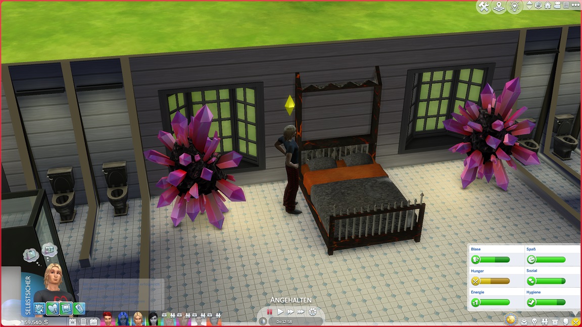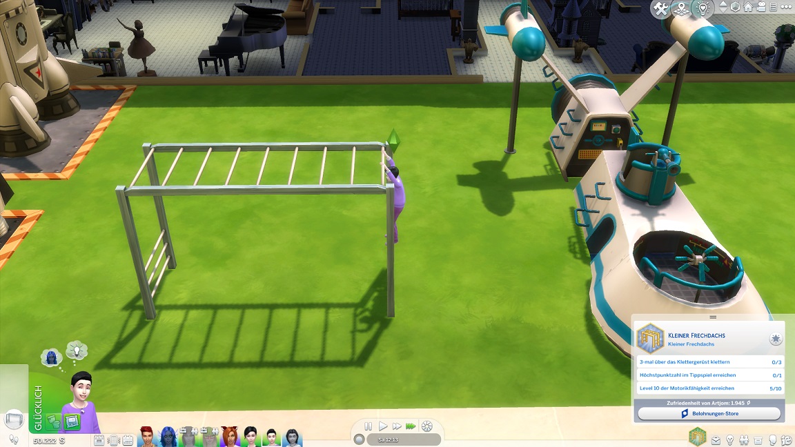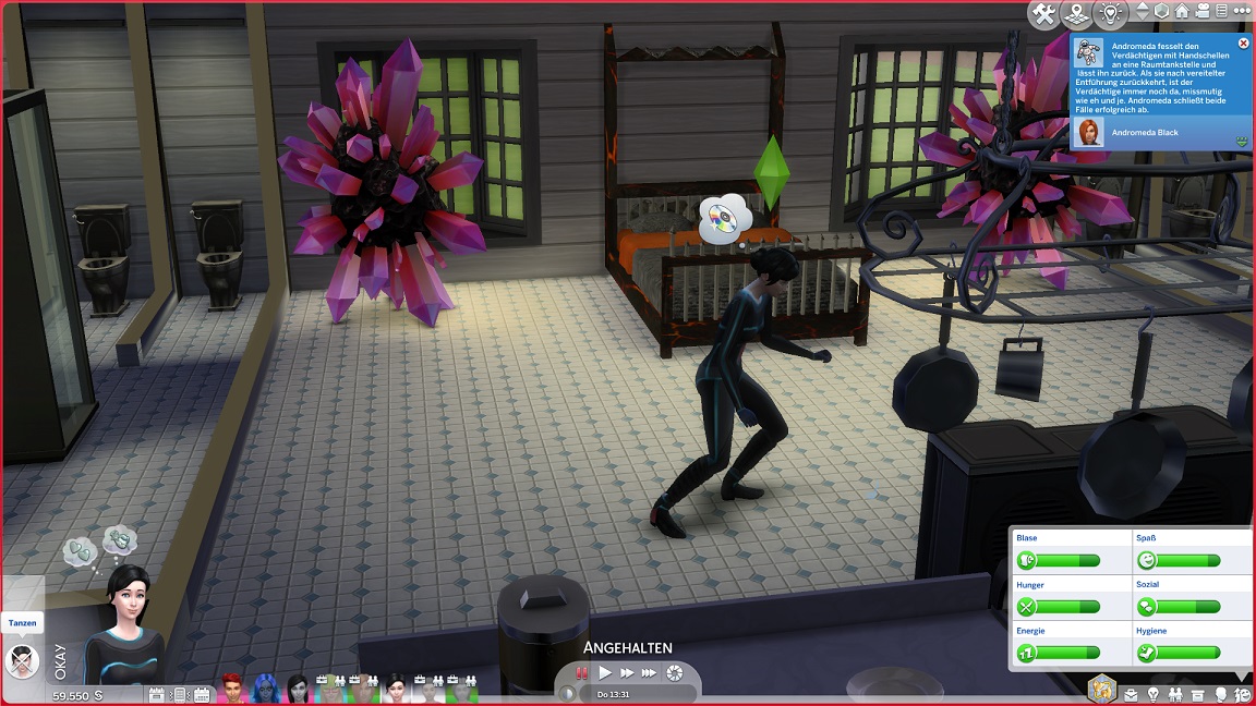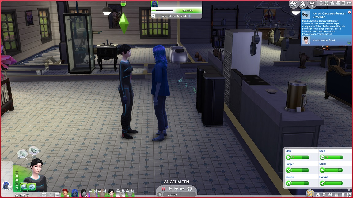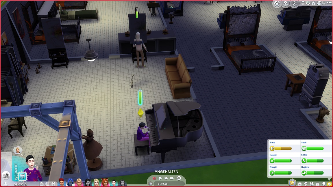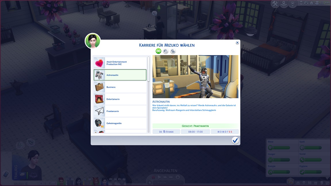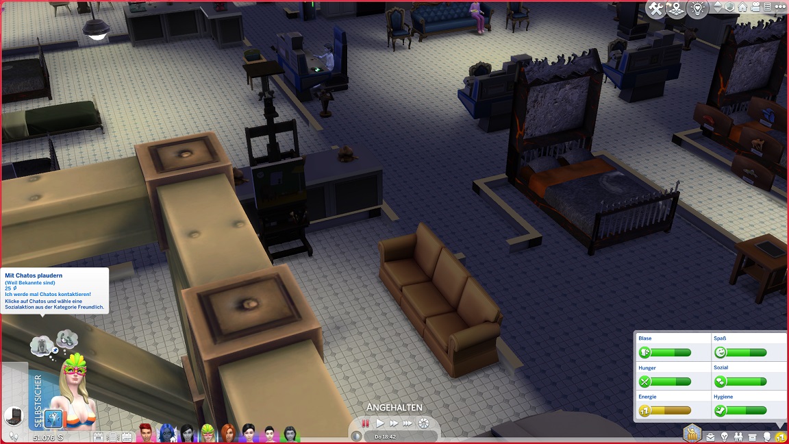 Ich nutze deswegen einsam/chaotisch/ehrgeizig - auch um weitere Eigenschaften zu verwenden - und lasse sie nach möglichst vielen erotischen Kontakten streben, da sie dies erst aus der Verborgenheit ihres Raumschiffs hinein in das Videospiel bzw. in die Sims-Öffentlichkeit führte.