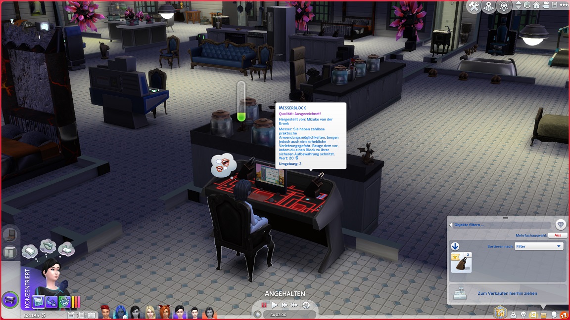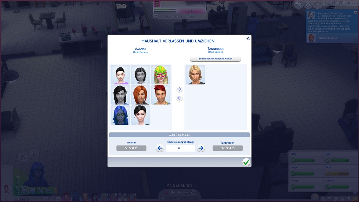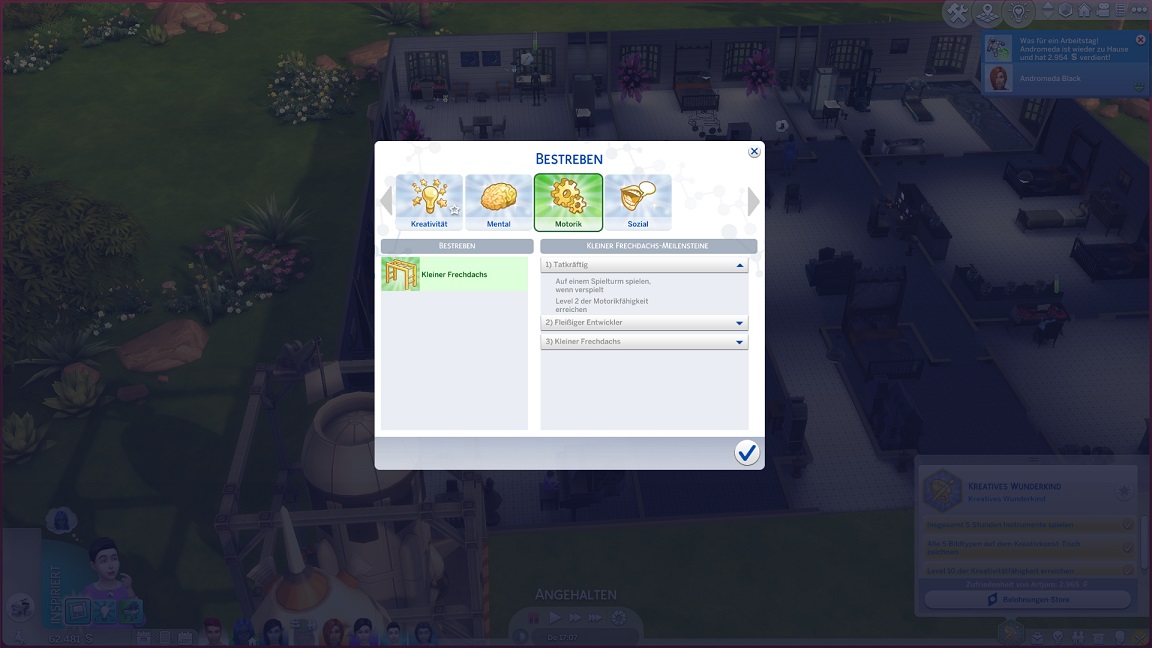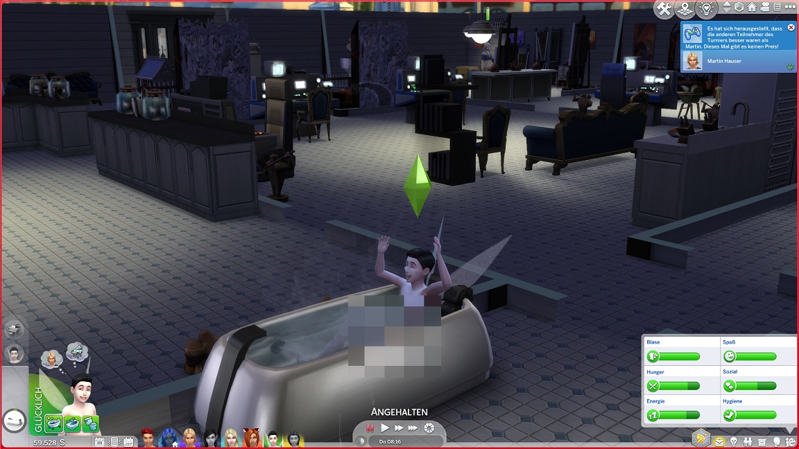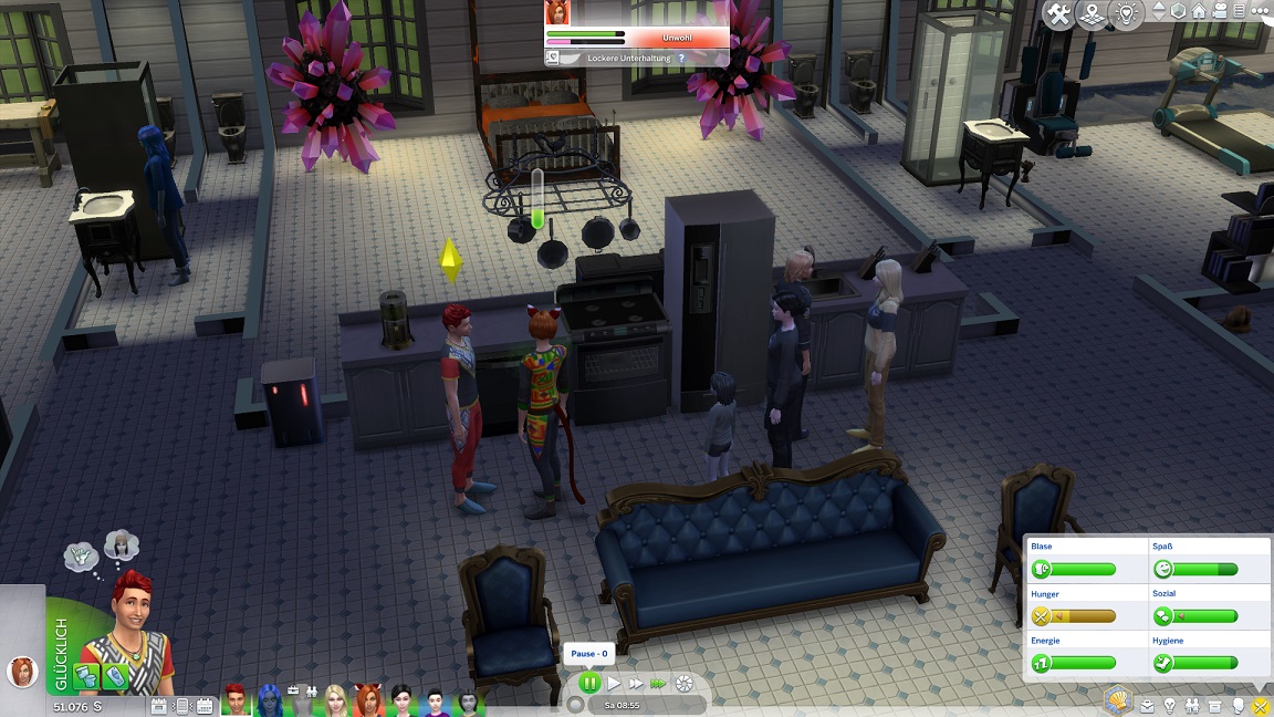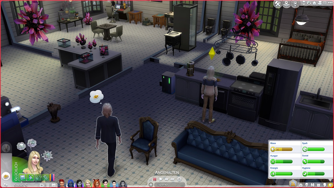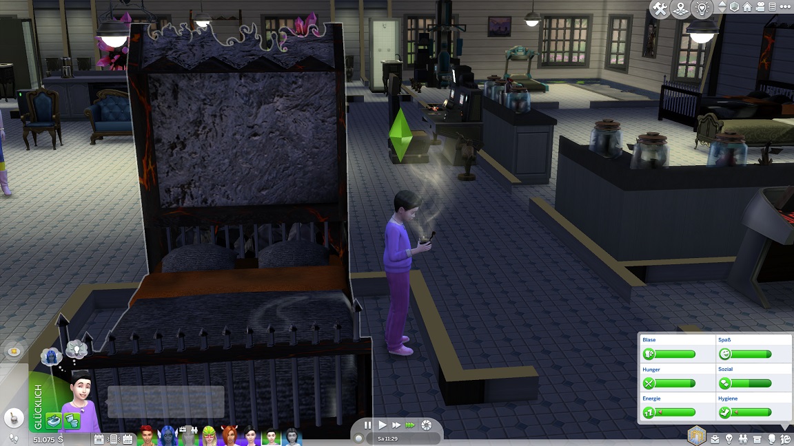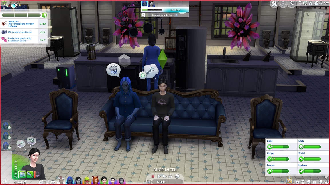 Ich nutze deswegen einsam/chaotisch/ehrgeizig - auch um weitere Eigenschaften zu verwenden - und lasse sie nach möglichst vielen erotischen Kontakten streben, da sie dies erst aus der Verborgenheit ihres Raumschiffs hinein in das Videospiel bzw. in die Sims-Öffentlichkeit führte.