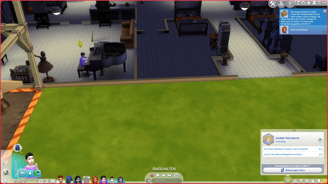 Lisa muss für ihren Beruf eine weitere Stufe Malerei (sowie Fotographie) erreichen, Artjom einige Stunden lang spielen. Lisa erhält dafür auch wieder eine Leinwand, während Andromeda an dem ersten Schiff herumtüftelt.