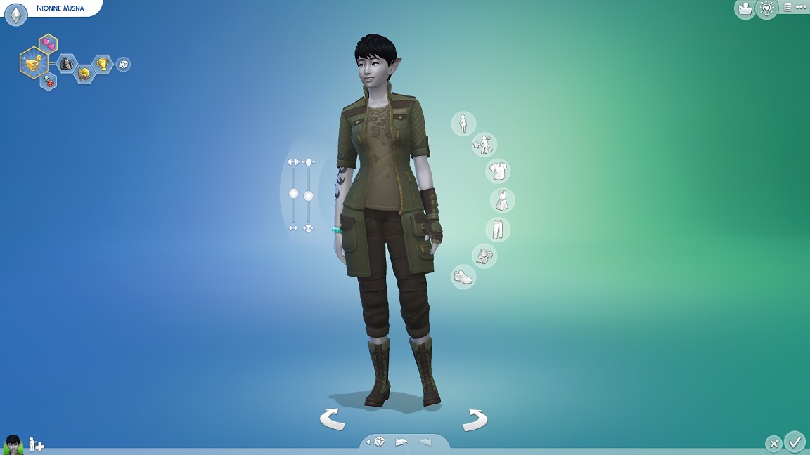 ... und so nicke ich auch die Idee des Spiels ab, ihr ein Armtattoo zu verpassen. Als "Bismutsiegel, zwei Cyan" nutzt ihr Overall Erdtöne mit einem hellen Armband; sie trägt keine echte Uniform.