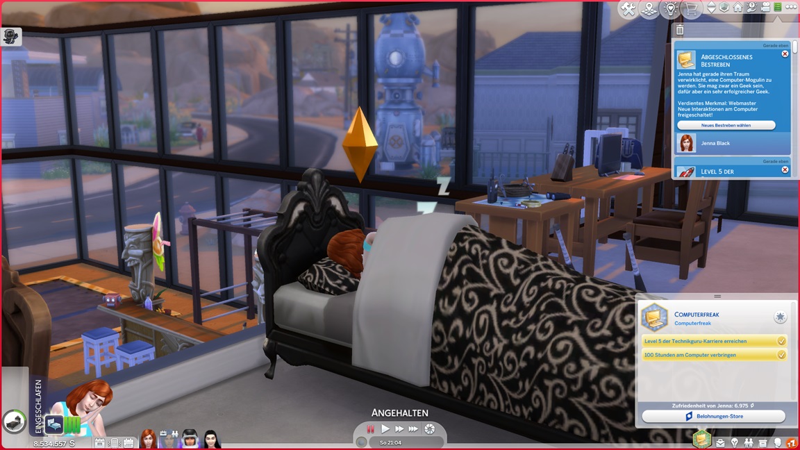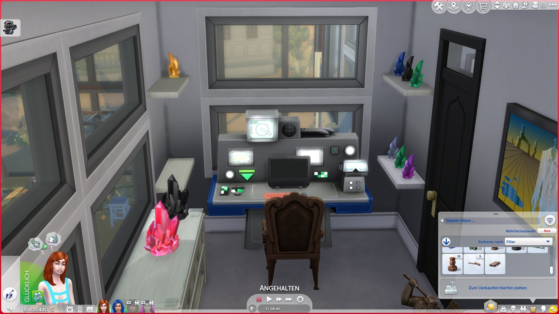 Sie wechselt auch zwischenzeitlich auf Mixerei, da sie diese Fähigkeit ohnehin pumpt. Gesammelte Kristalle füllen die Regale.
