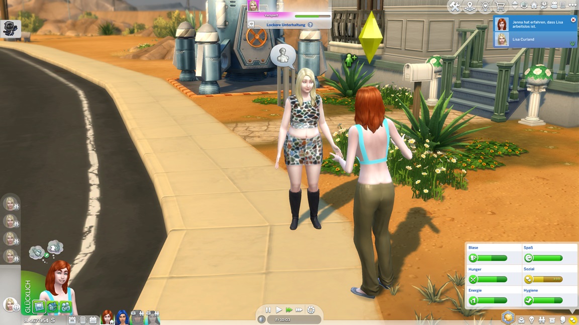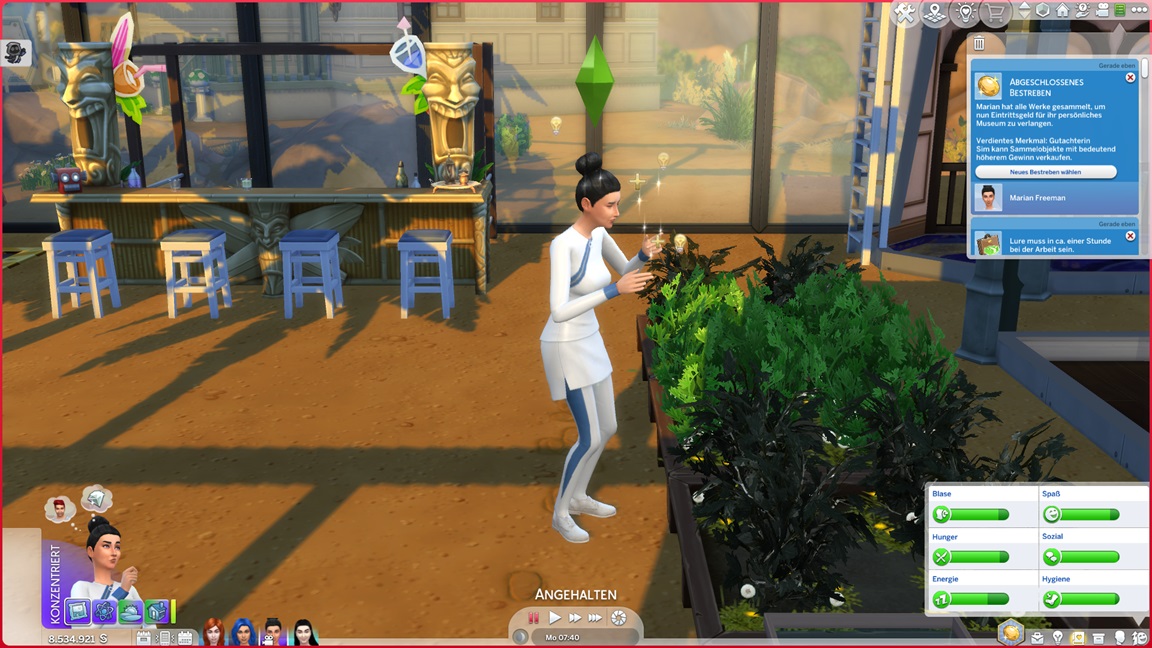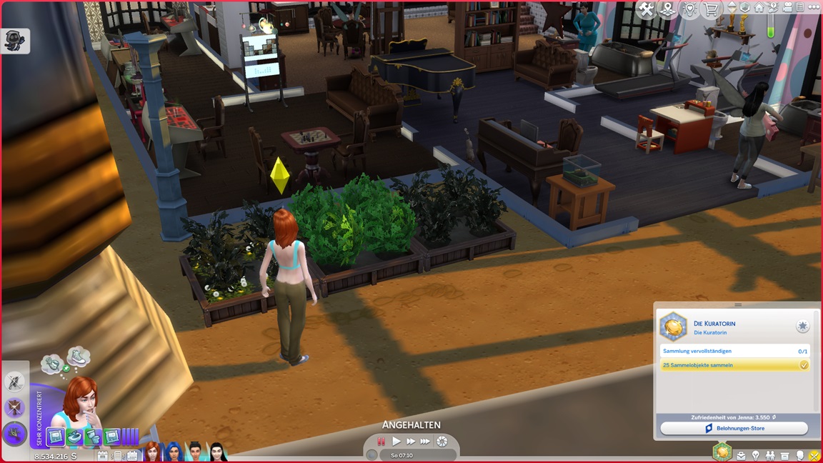 Bei der täglichen Gartenarbeit stoße ich eher zufällig auf einen Trick: Natürlich zählen geerntete statt verkaufte Pflanzen als Sammelgegenstände, und da die Knospen einzeln zählen, kommt eine Menge zusammen. Jenna erledigt ihren Pflichtteil allein durch das Beet und muss nun Marian darum bitten, für sie im All nach Kometen zu suchen, da ihre Schwangerschaft ihr dies verbietet.