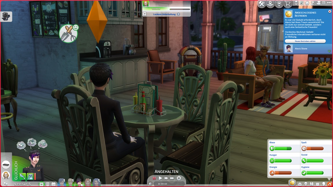 Medea stellt fest, dass sie Programmieren mag. Der Nachbarschaftsfunk vermeldet, dass Günther und Nikodema ein Kind erwarten. Ariadne fragt Alexis, ob sie Mareike einen Antrag machen soll. Daniel wirft sich Andromeda um den Hals und sieht sich mit ihr Sterne an, was ebenfalls für eine stete Beziehungsverbesserung sorgt.