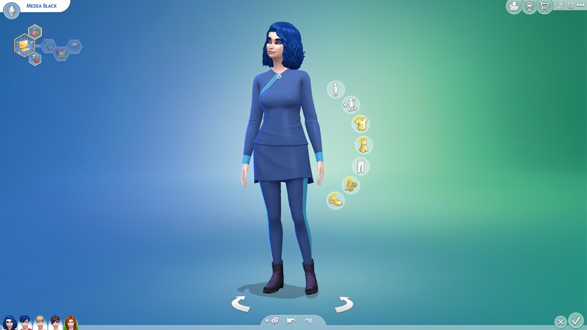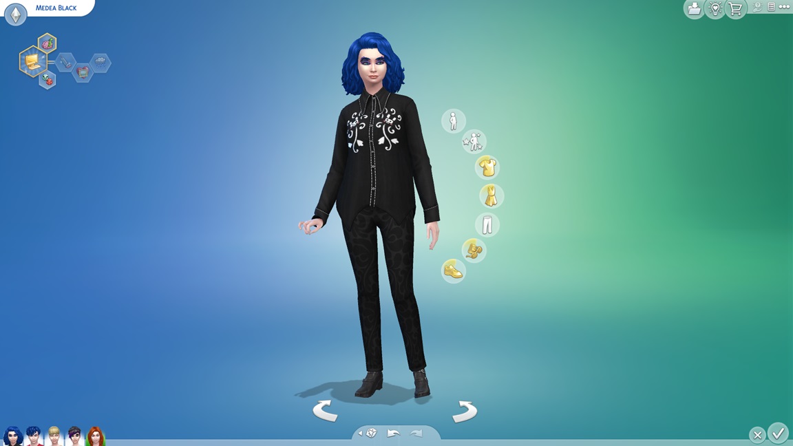 Auf Feiern gibt sie den Goth, weil: muss. Bei Hemd, Hose und Schuhe handelt es sich um freigespielte Gegenstände, die Ohrringe verbleiben unsichtbar.
