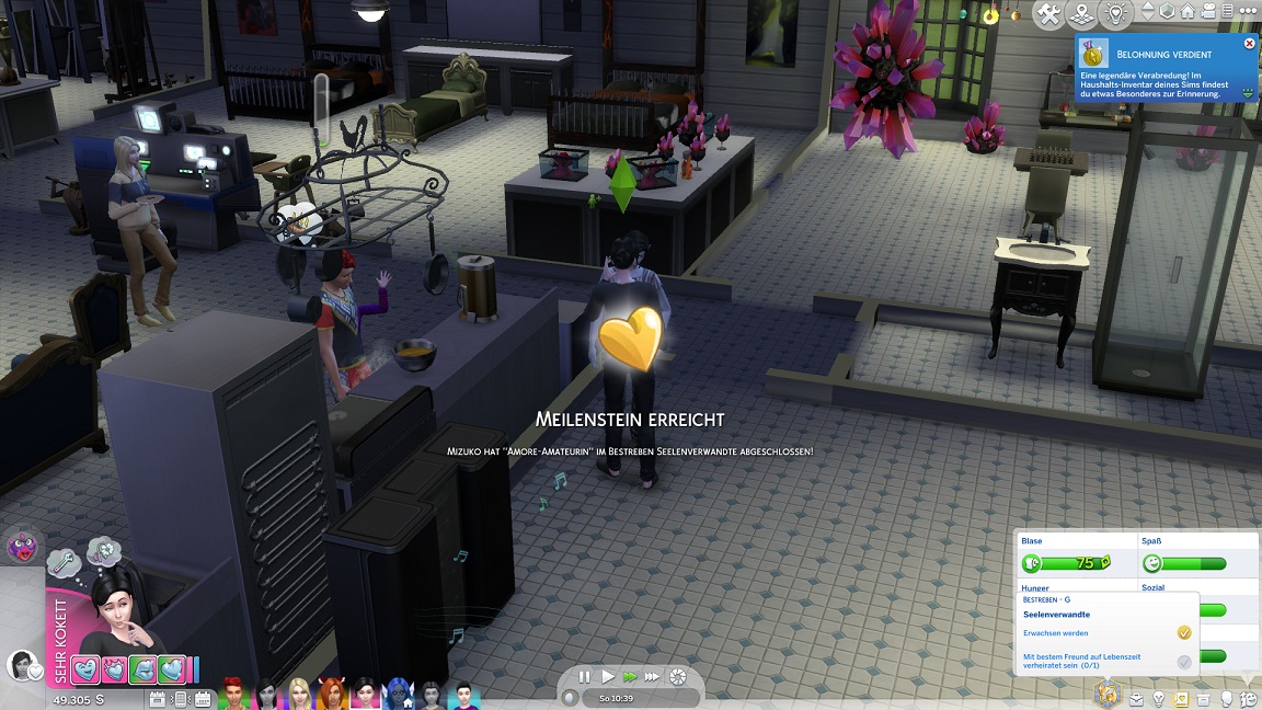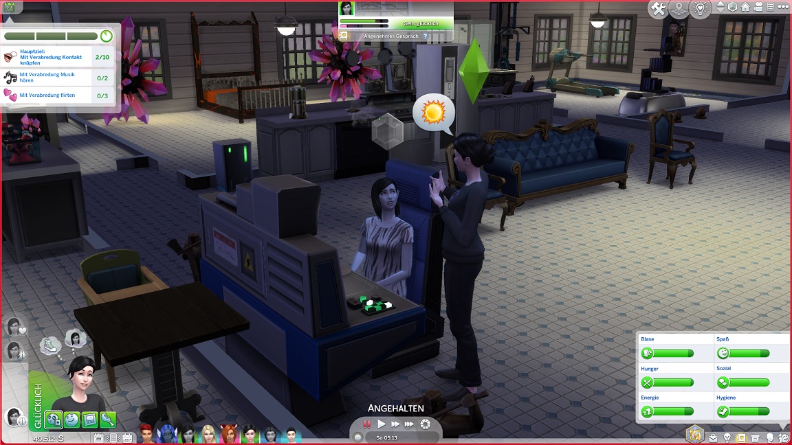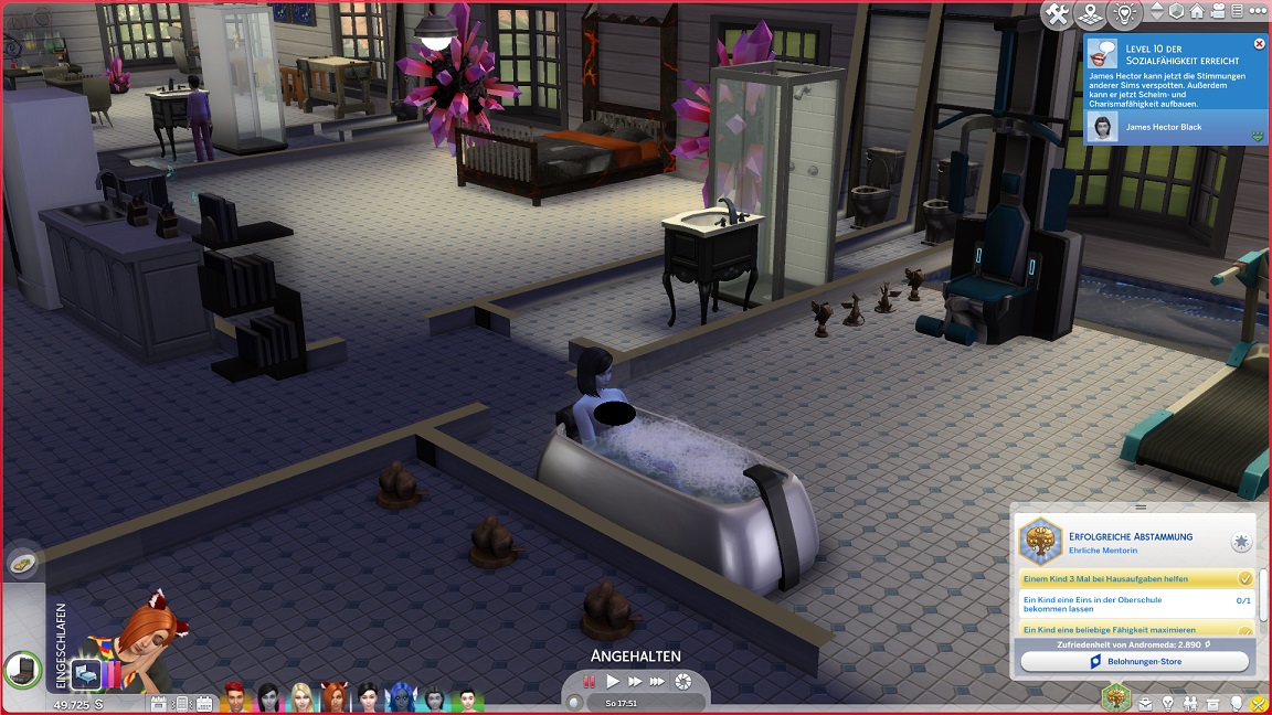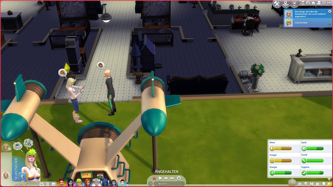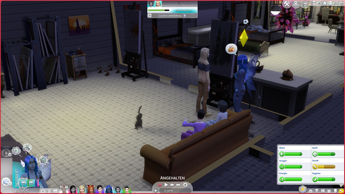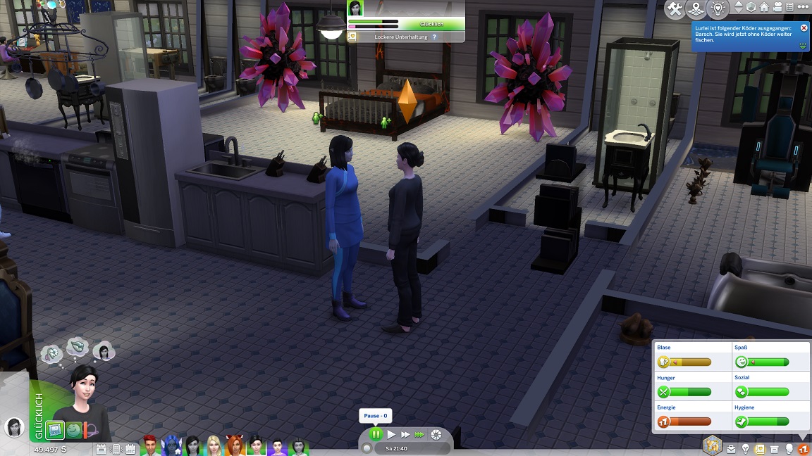 Lurlei hadert an ihrem Job. Artjom und James lernen einander und eine Schulfreundin mit leuchtenden Augen besser kennen. (Ja, ein Nebeneffekt meiner Kostümmods: Indem ich mir für die Mannschaft Flügel, Öhrchen und dergleichen suchte, stellte ich sie auch den zufällig erstellten Normal-Sims zur Verfügung und ließ die gesamte Welt bunter werden.)