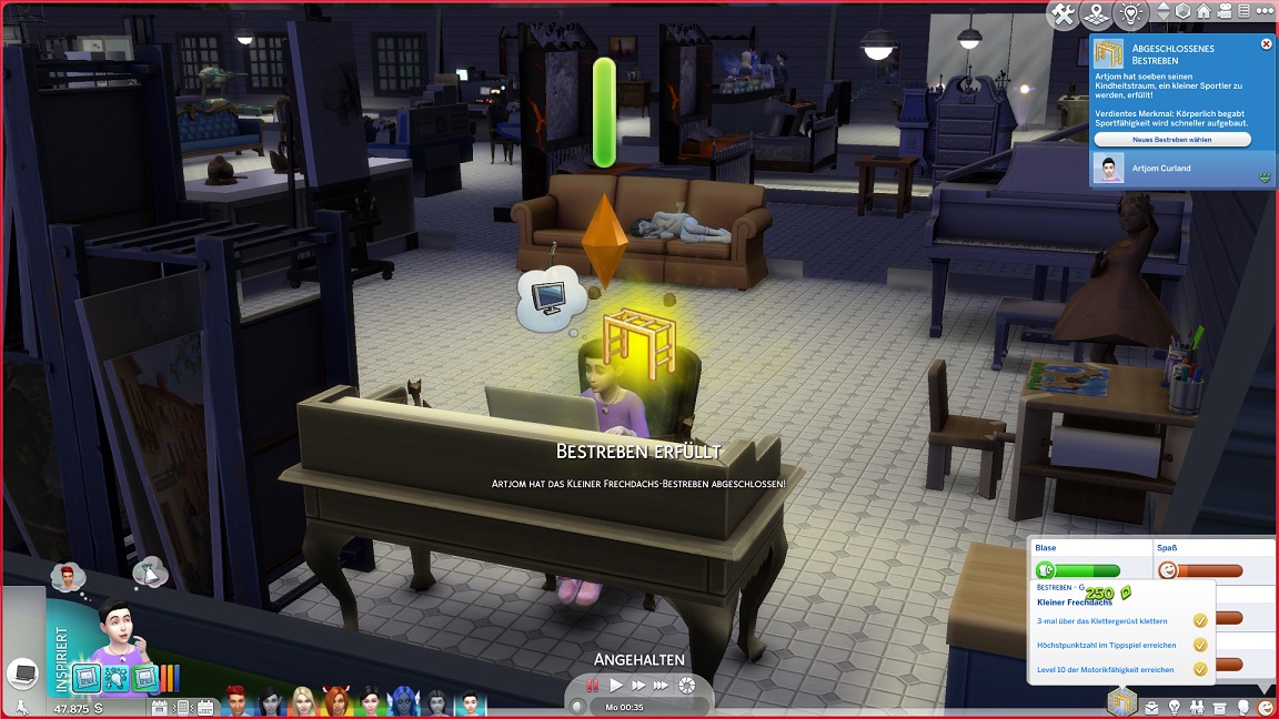 Während der erwachsene Teil der Mannschaft noch seine "Teambuilding-Maßnahme" nachbespricht, schließt Artjom auch seine dritte Bestrebung ab. Sie erwies sich als relativ unspektakulär, und seine letzte Hürde bestand daraus, jene dritte Fähigkeit auf Maximalwert zu pushen.
