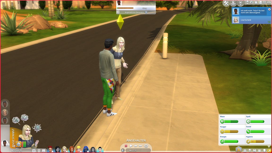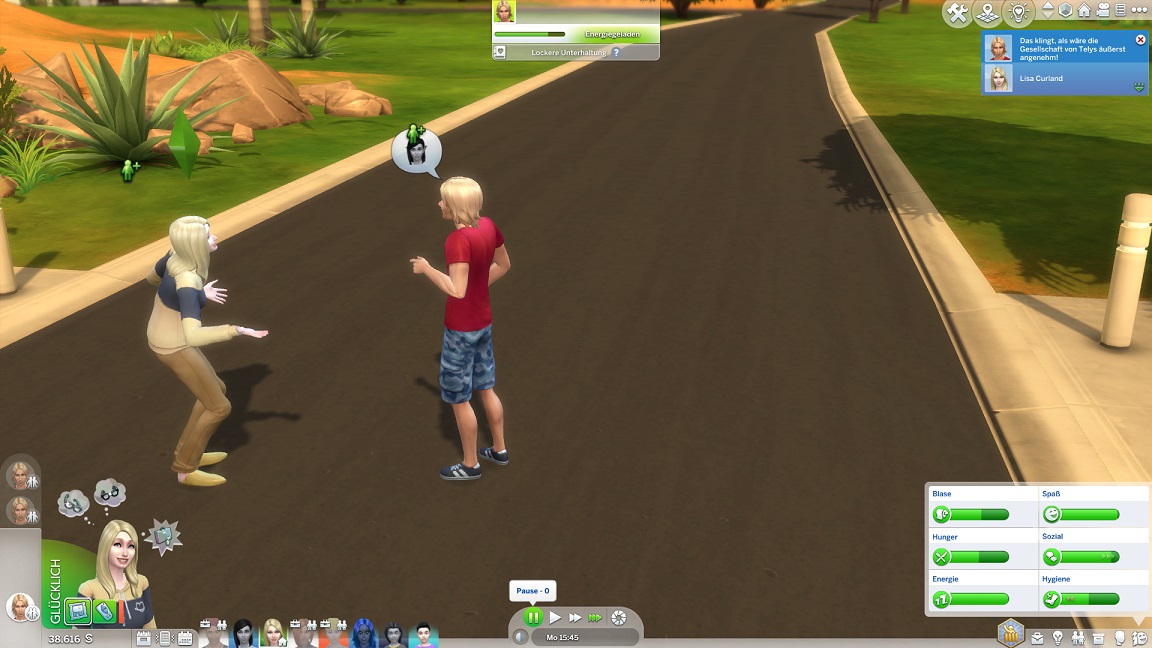 Nun benötigt Telys nur noch drei Freunde. Lisa sieht derweil Martin auf der Straße vorbeijoggen und schlägt diesem vor, doch einmal Telys besser kennen zu lernen. (Ja, bei dieser handelt es sich immer noch um seine Ehefrau.)