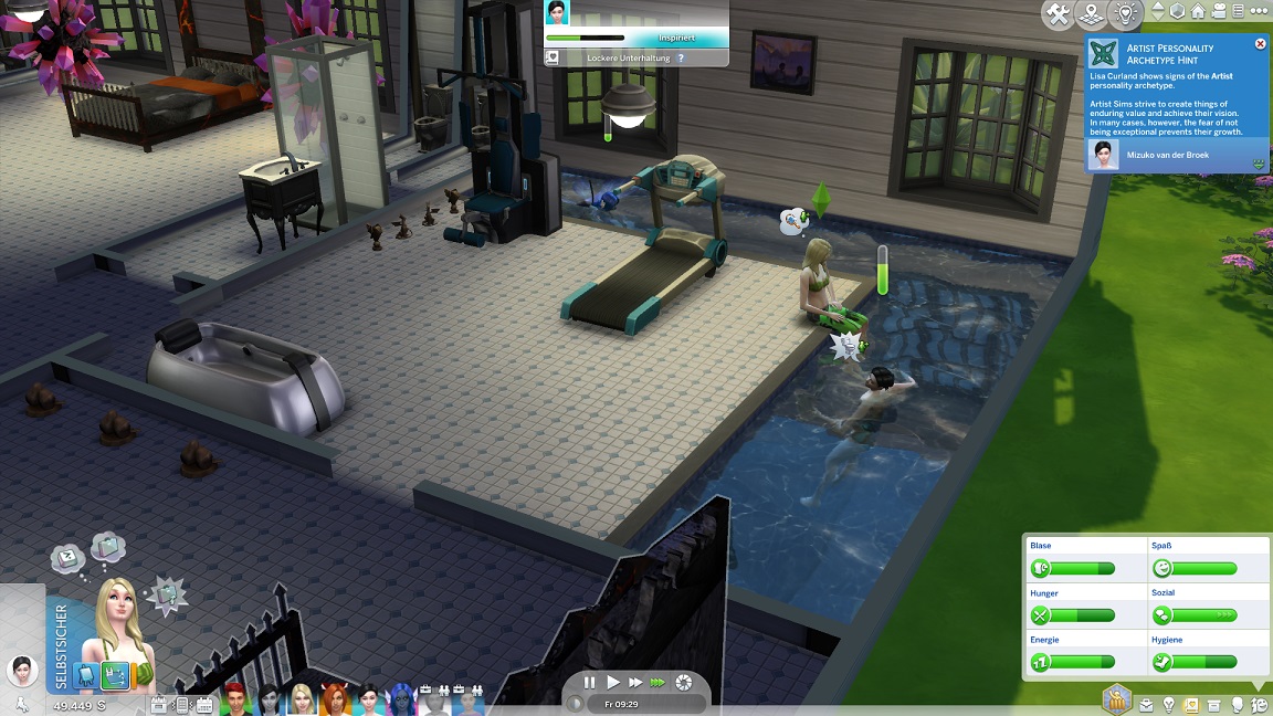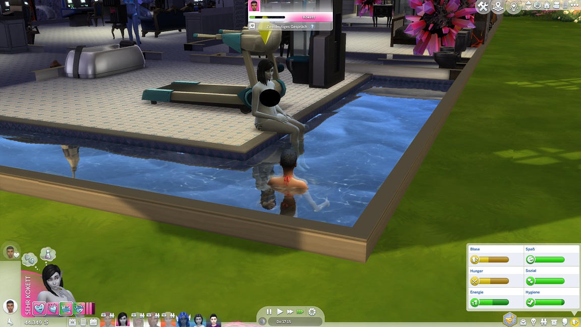 Telys versucht bei einer neuen Nachbarin Beziehung durch gemeinsames Schwimmen aufzubauen.