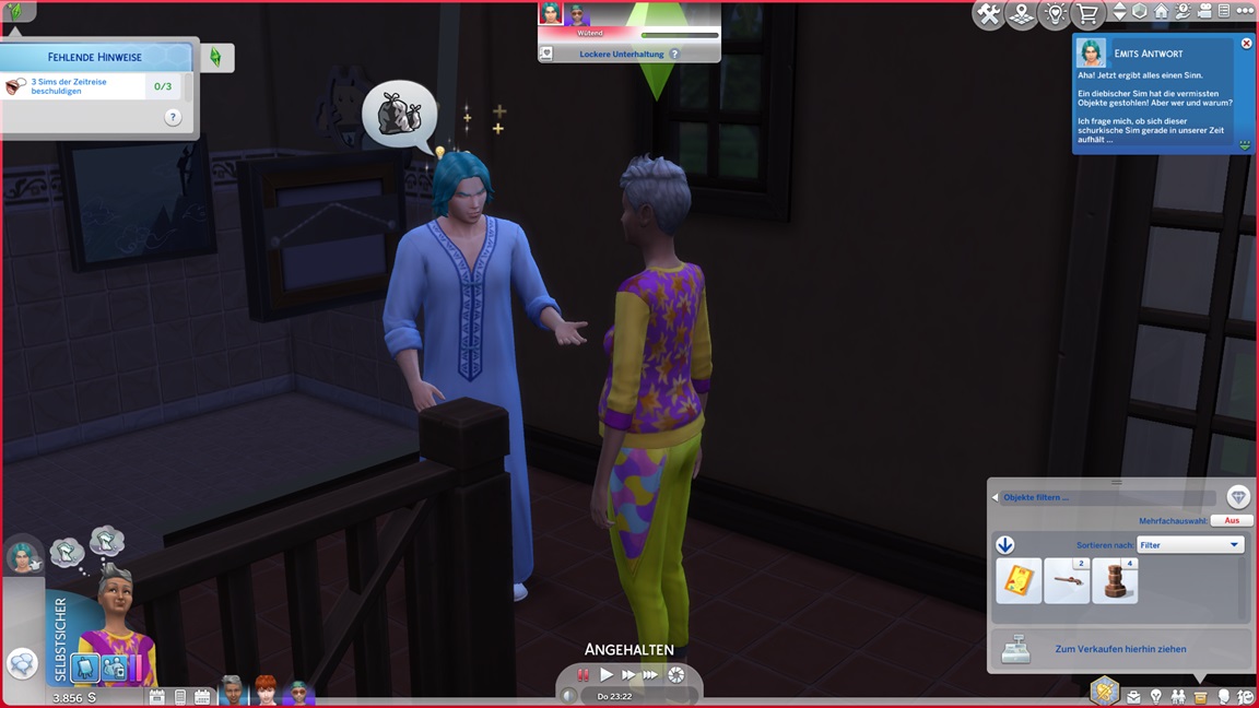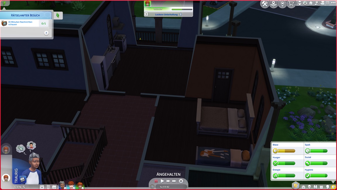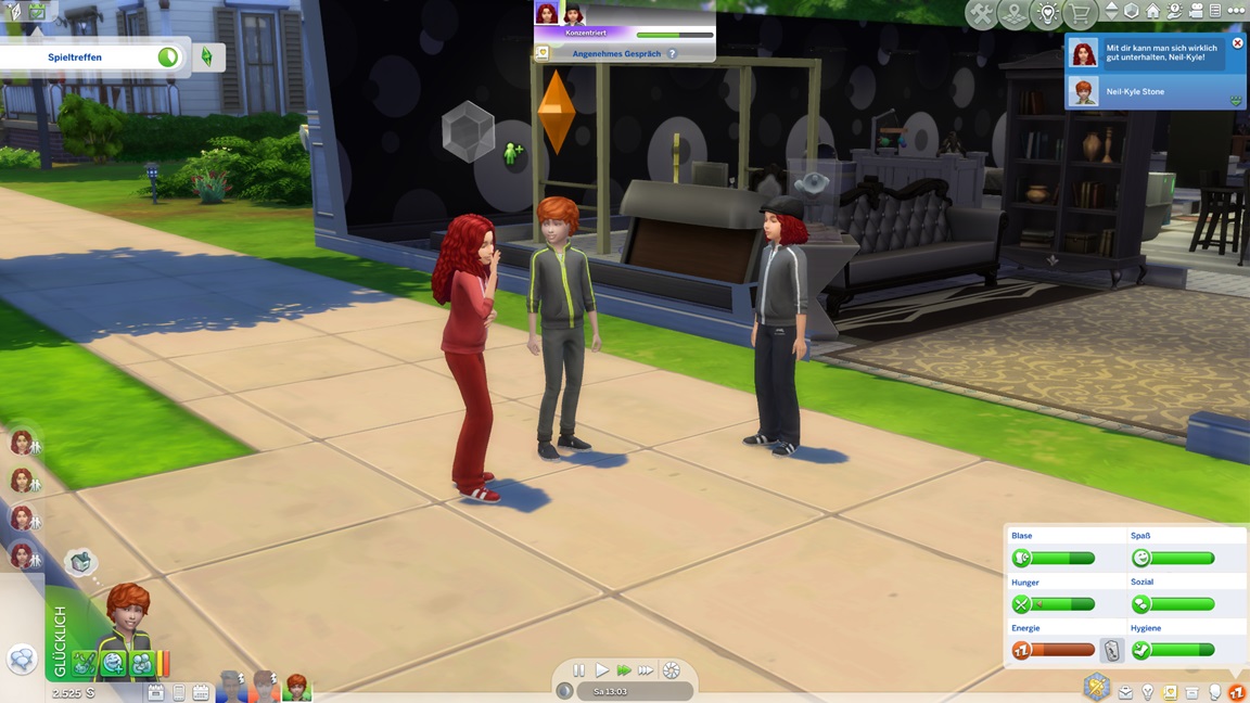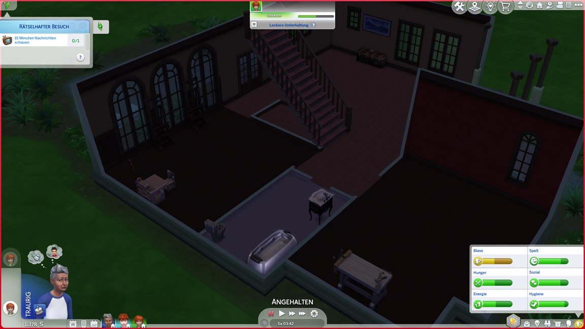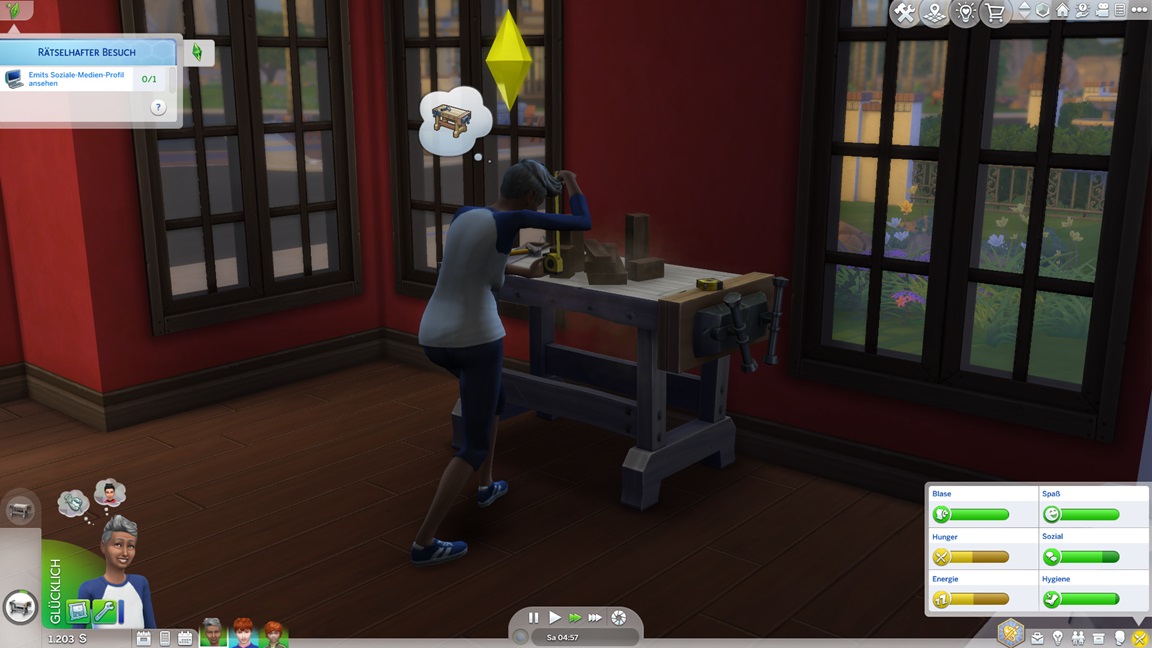 Das Trio begann mit 100.000 Credits, wovon bereits 45.000 für das Haus draufgingen. Im Geiste eines "Sims, wie man es plante" genügt das Geld nicht für alles, was man wünscht.