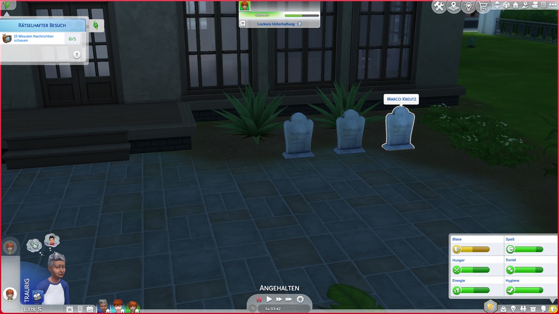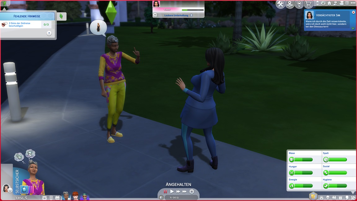 Eine Fragerunde in der Nachbarschaft schließt die erste Queste ab.