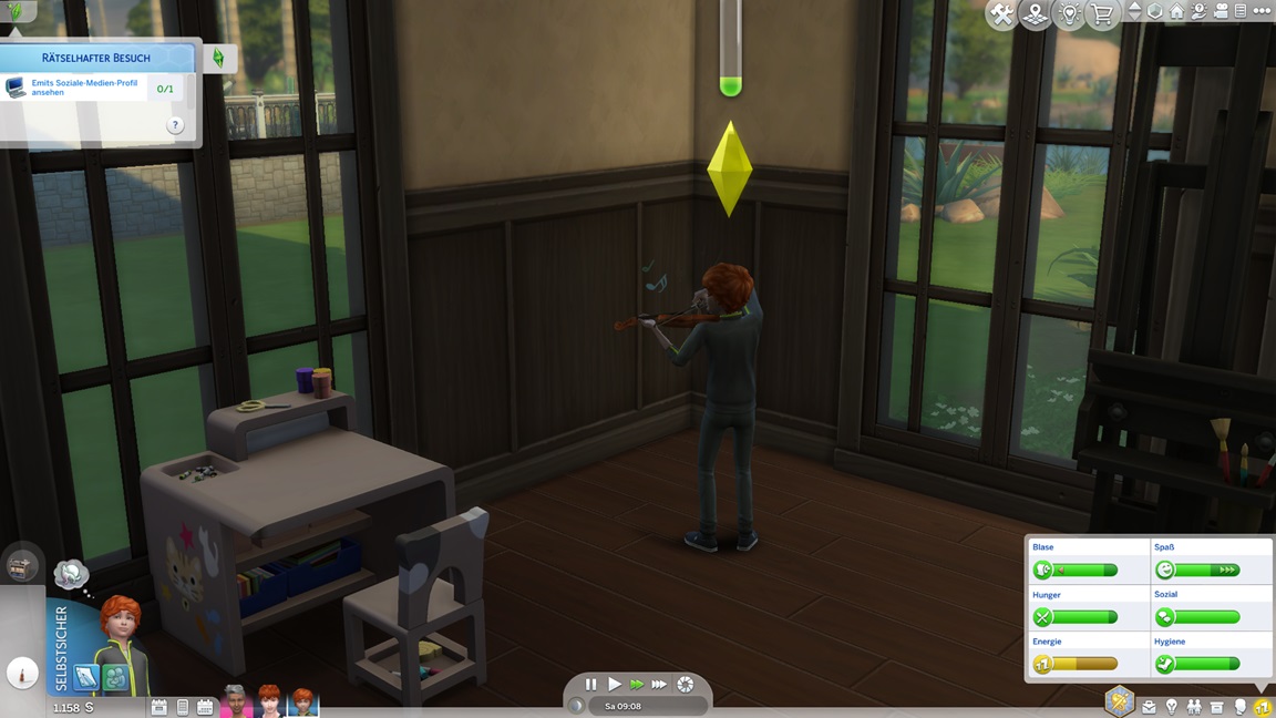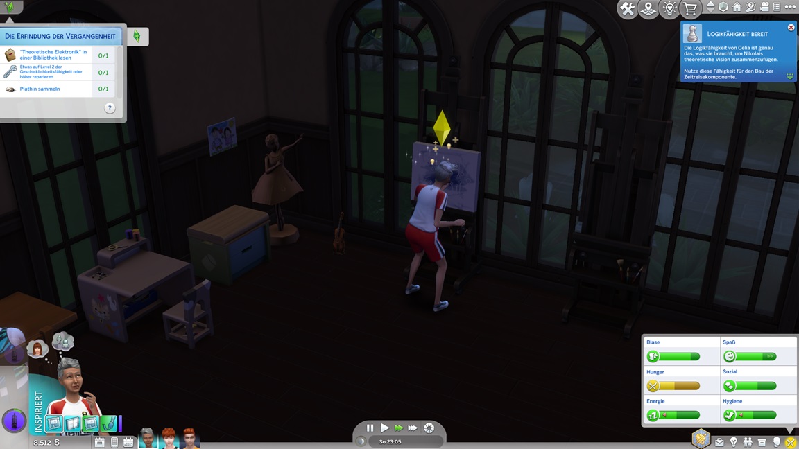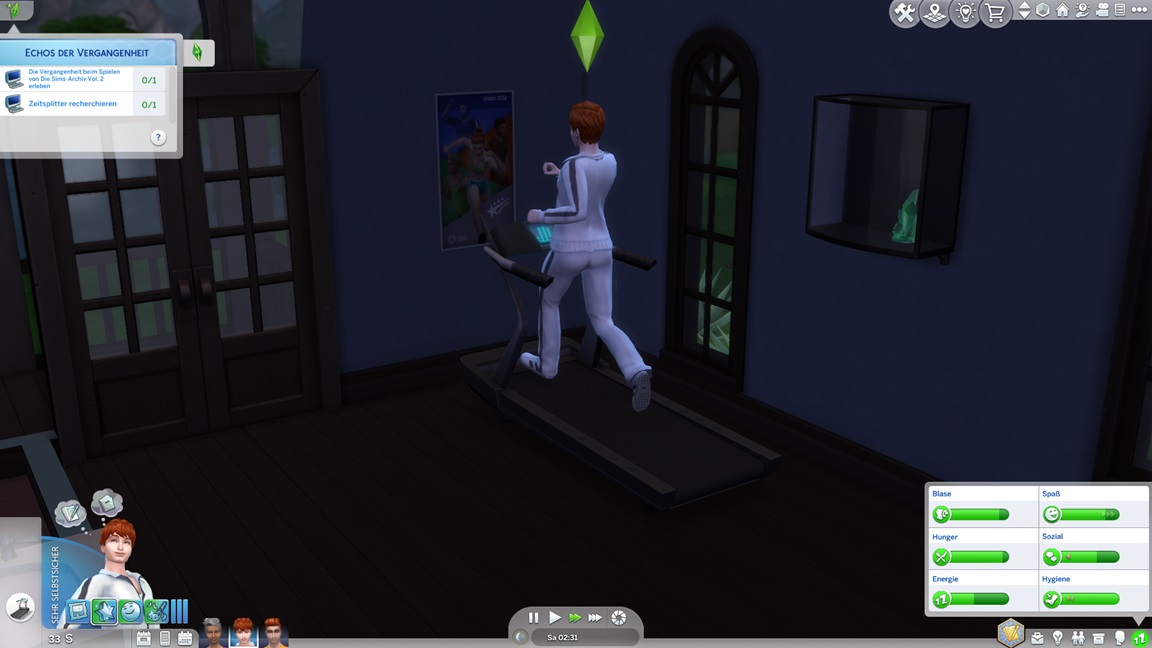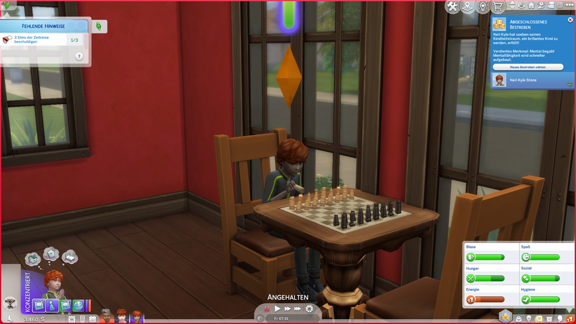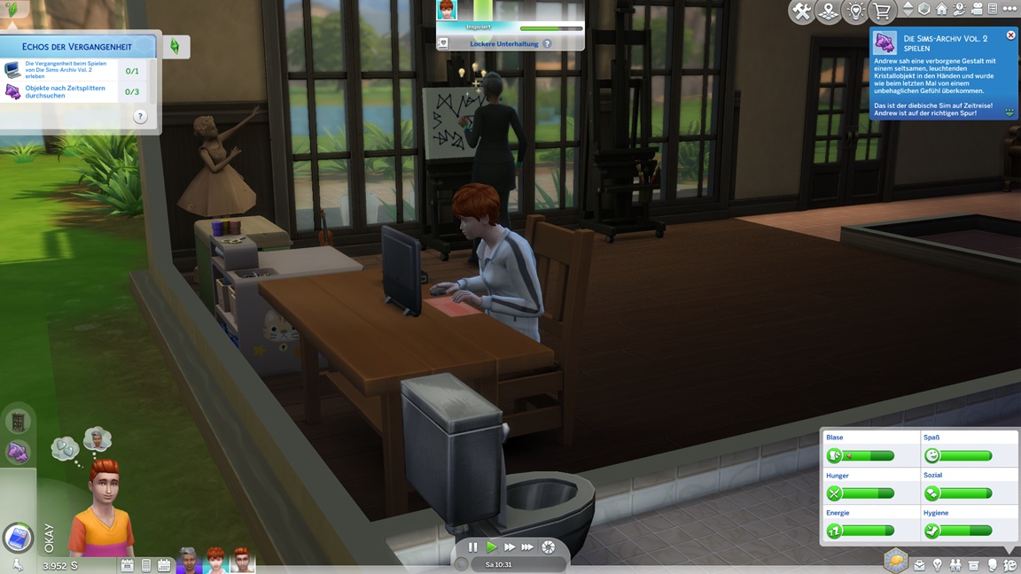 Andrew wechselt für die Konzentrationsgegenstände seine Karriere (er steckte irgendwo im Mittelfeld des Sportlers). Zunächst wählt er Tech-Guru, aber als er dort trotz Vorteil auf Stufe 1 beginnt, greift er lieber zum Astronauten. Nun genügt das Geld auch für einen Computer.