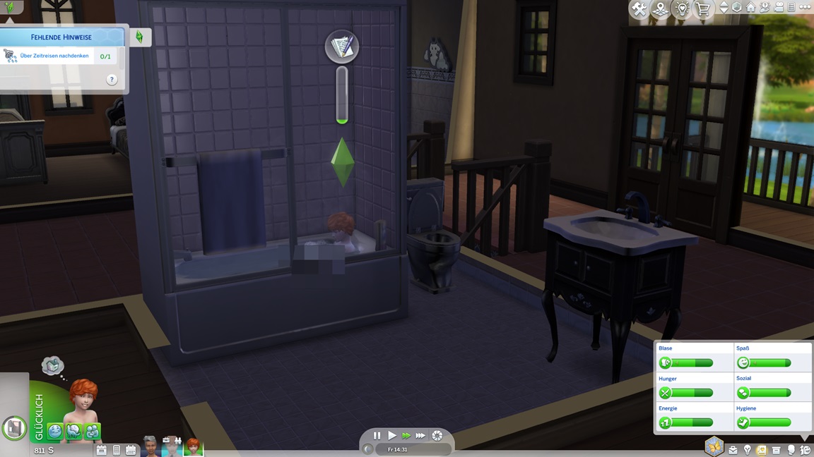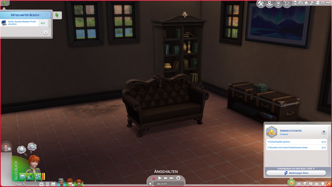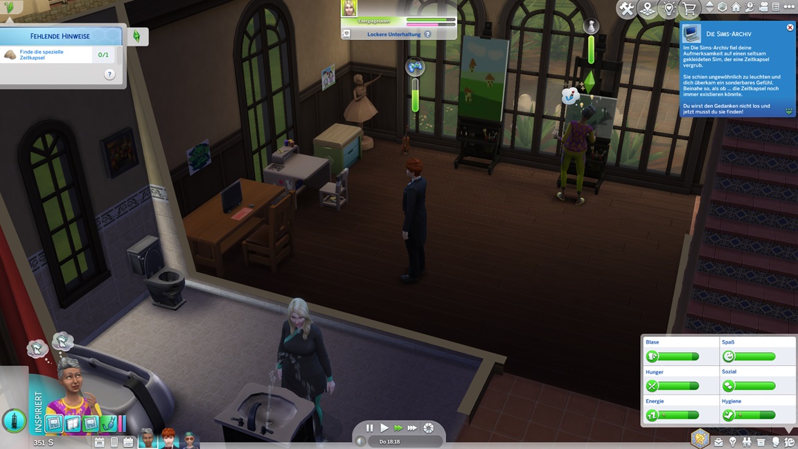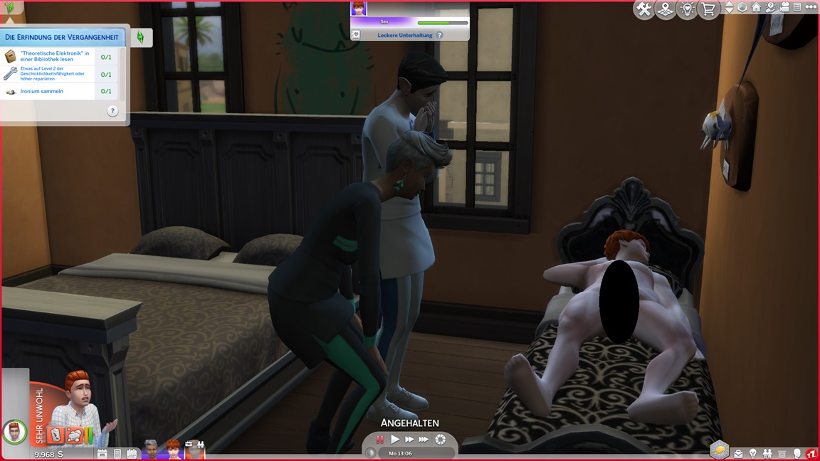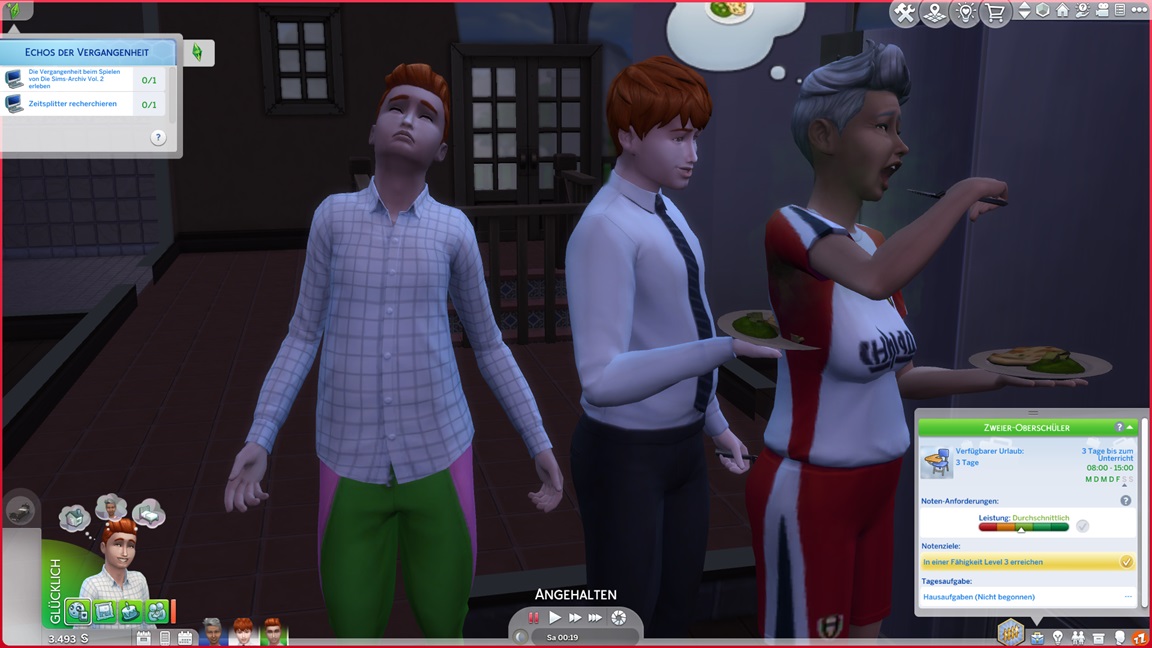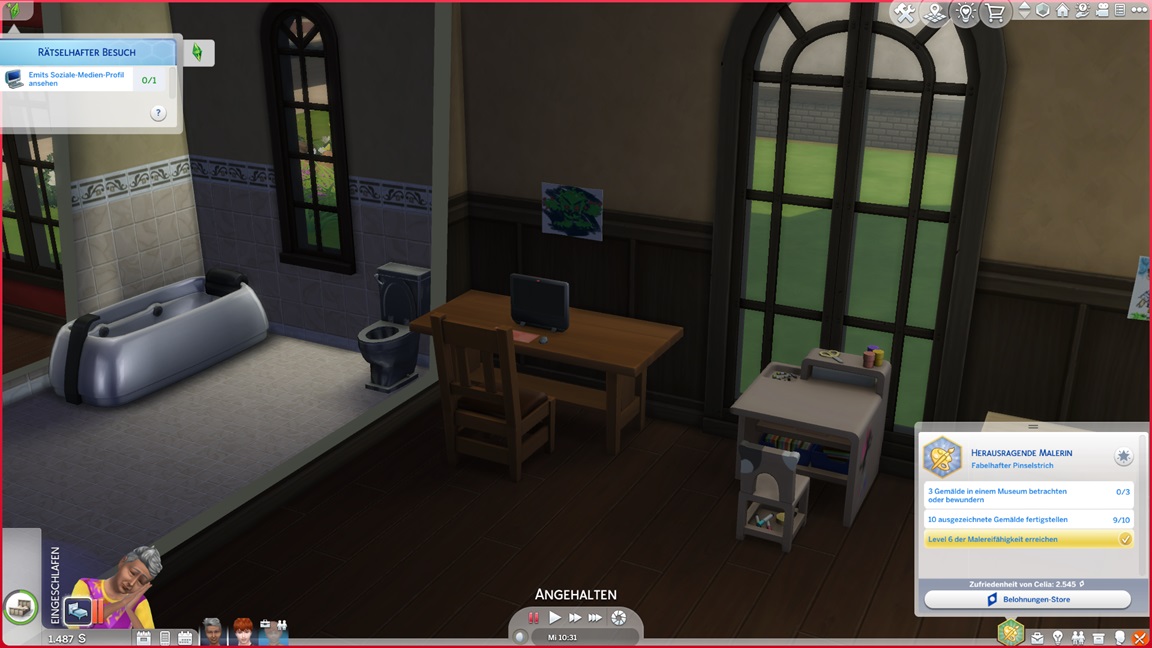 Der Wicked-Mod enthält nun eine erste Bestrebung aus dem Nudisten-Bereich, für die sich ein Haushalt mit Kind nicht wirklich anbietet. Celia wählt Malerei, Andrew schließt Renaissance ab und fährt mit Angelei fort. Neil-Kyle wählte bereits Kreativ. Da grüßt auch die Eventkette.
