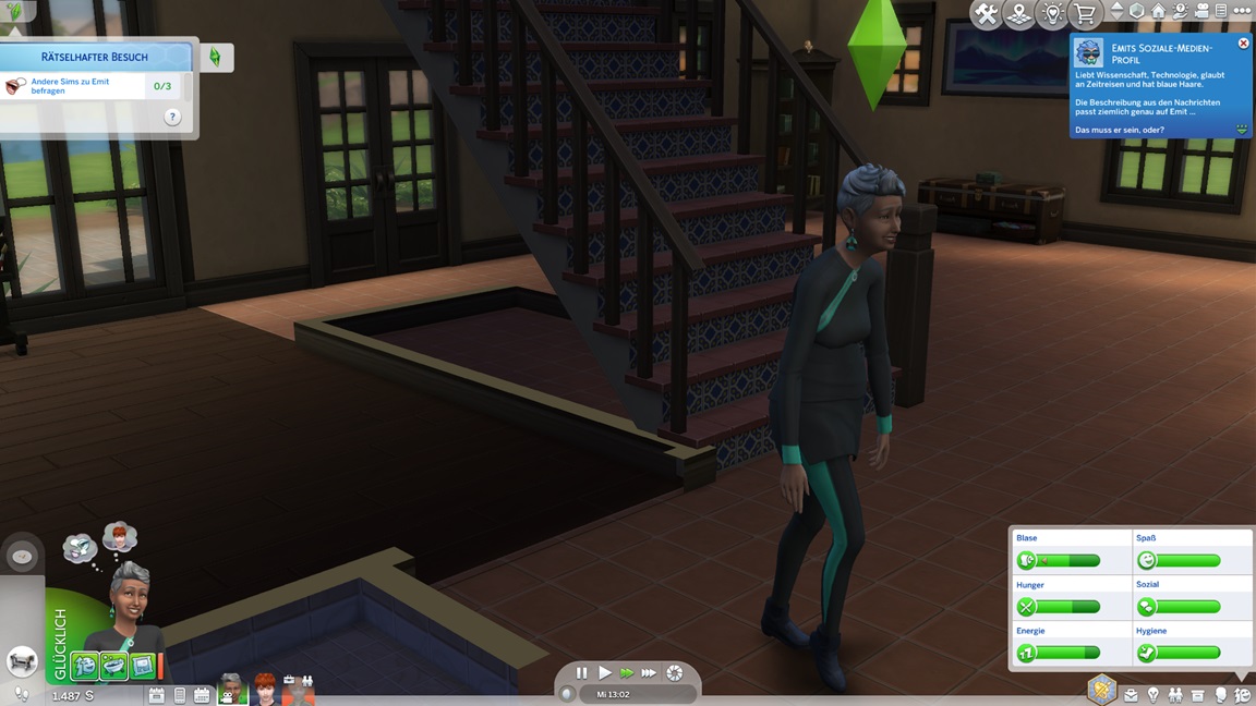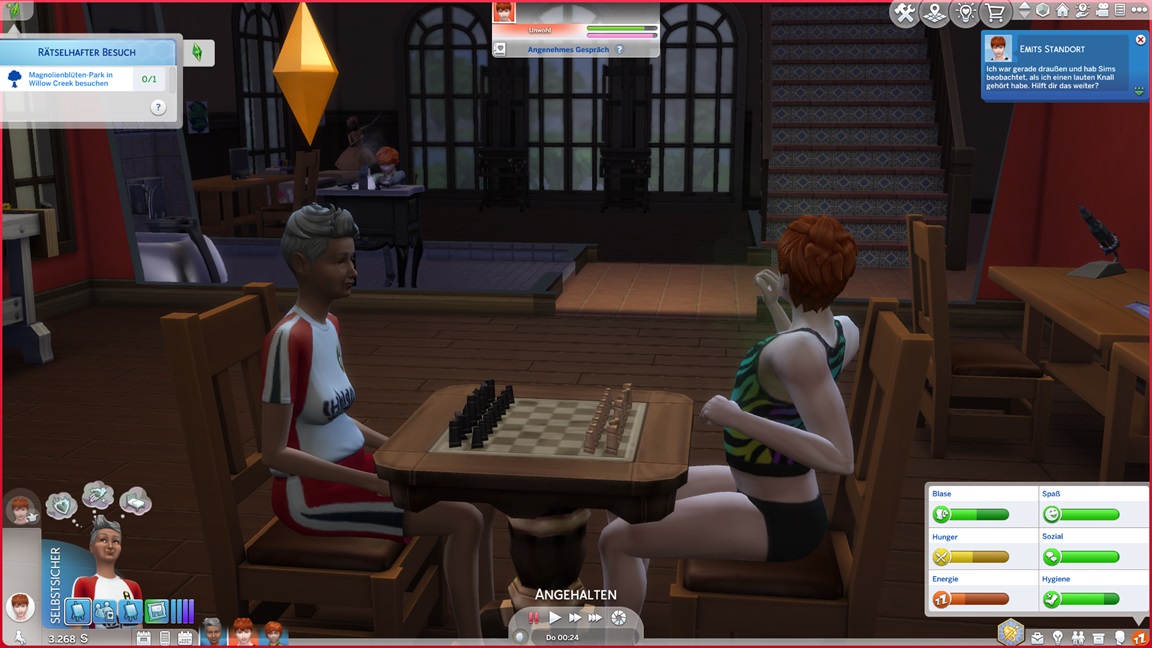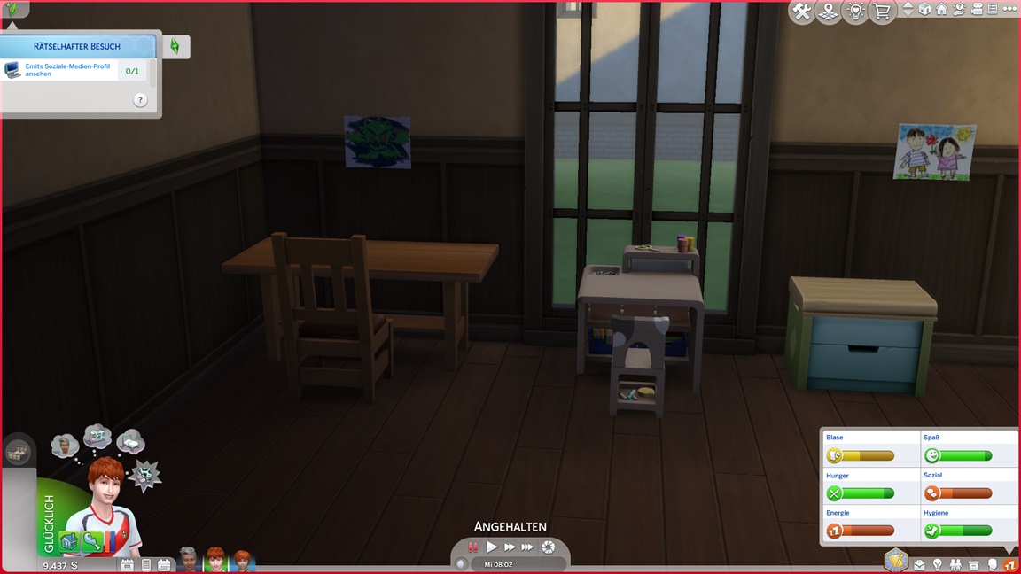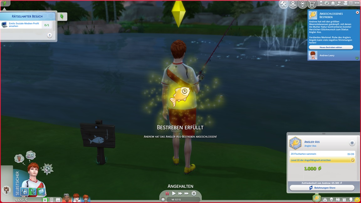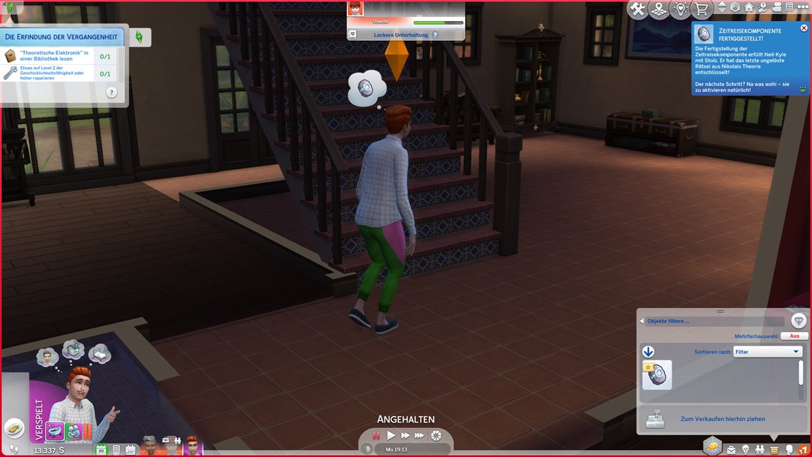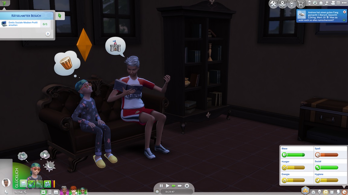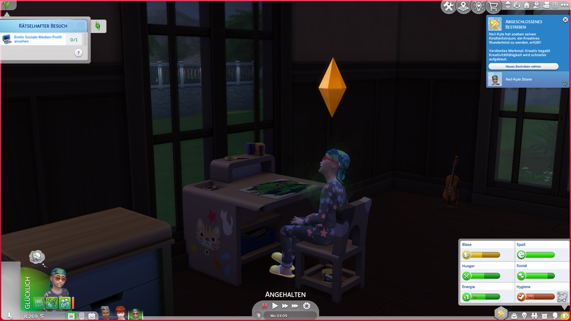 Der Wicked-Mod enthält nun eine erste Bestrebung aus dem Nudisten-Bereich, für die sich ein Haushalt mit Kind nicht wirklich anbietet. Celia wählt Malerei, Andrew schließt Renaissance ab und fährt mit Angelei fort. Neil-Kyle wählte bereits Kreativ. Da grüßt auch die Eventkette.