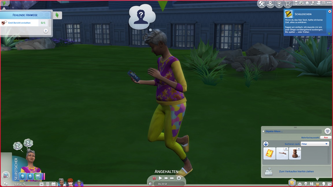 Celia geht graben und findet direkt eine Kapsel. Sie enthält einen Schuldschein.