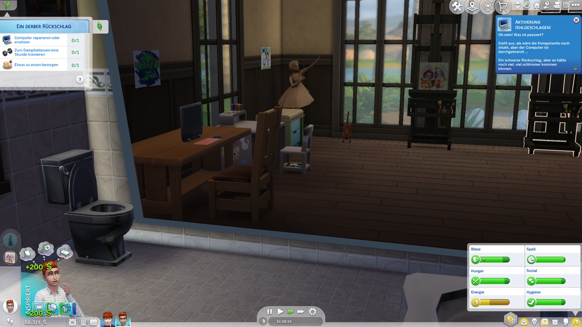 ... und erweist sich als gemein. Sie richten in der "Spaß-Ecke" einen Computer her, der angeknackst werden kann, um dann repariert zu werden.