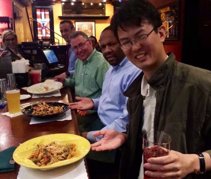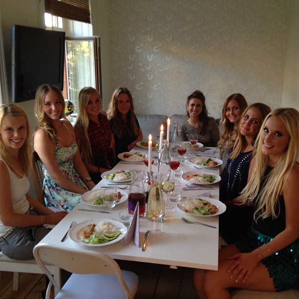 Gestelltes Bild. Es sieht so aus, als wollten sie gleich essen, aber da ist nichts zu essen auf den Tellern. ;)