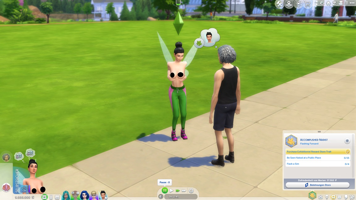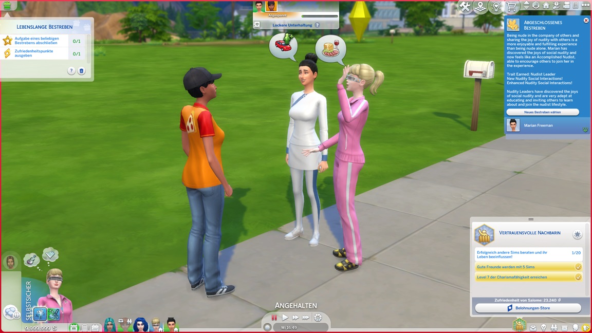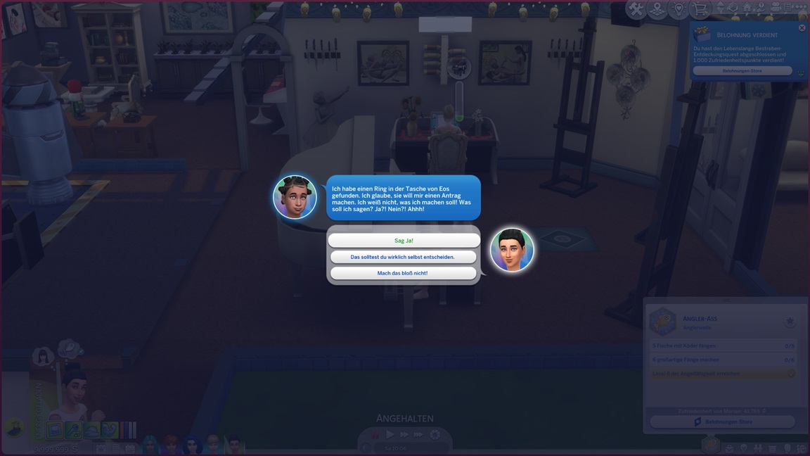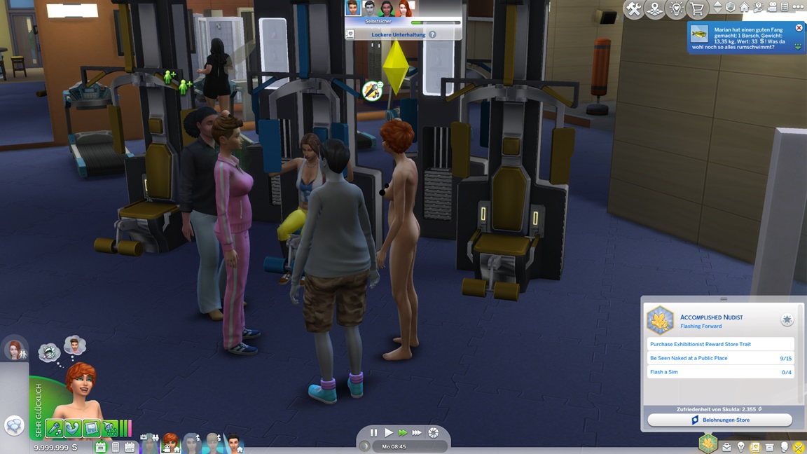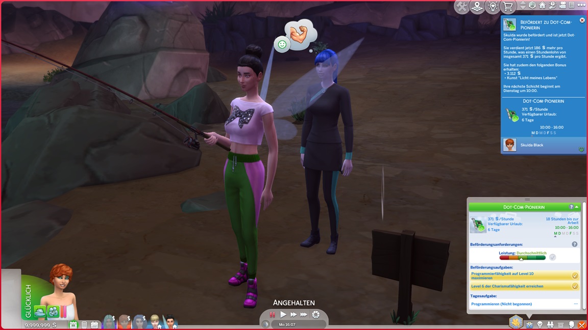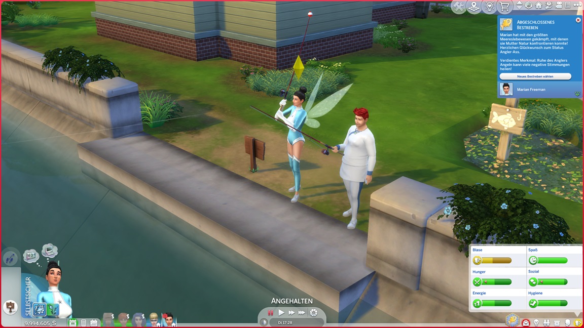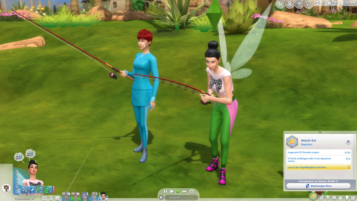 Während die angehenden Offiziere auf der Arbeit weilen, unternimmt Marian einen Angelausflug und stellt direkt fest, dass sie es mag. Sie ruft Salome dazu, die die Gelegenheit nutzt. (Der "Positiv über Sim äußern"-Ketten-Exploit funktioniert immer noch.)