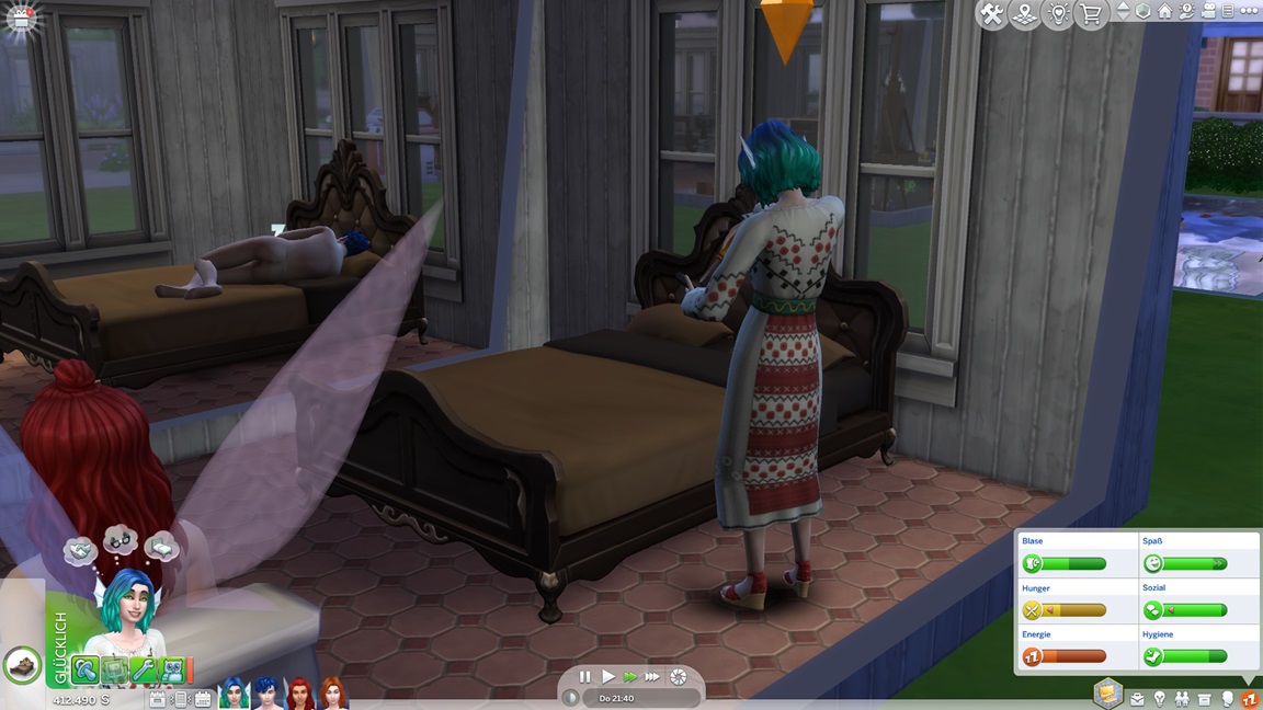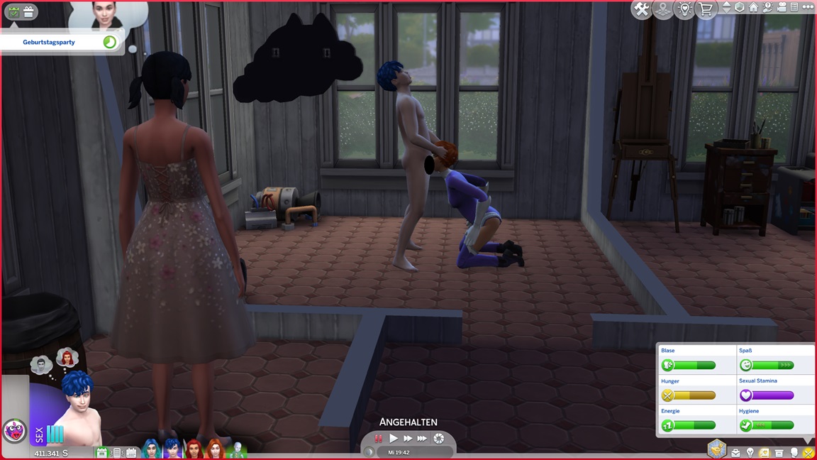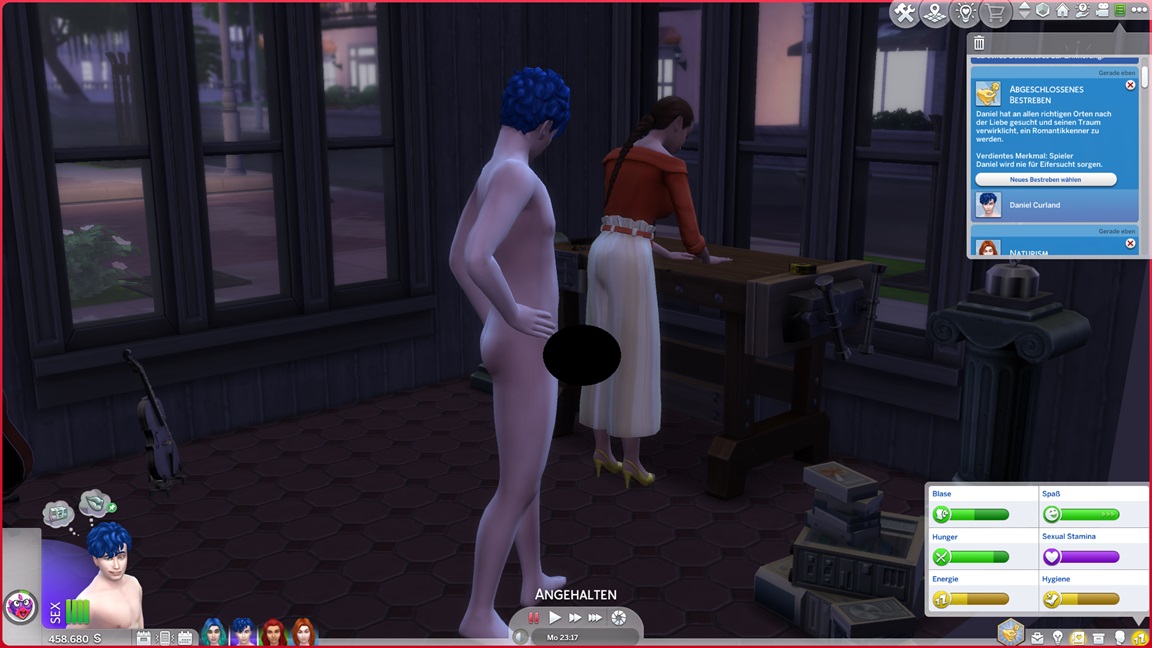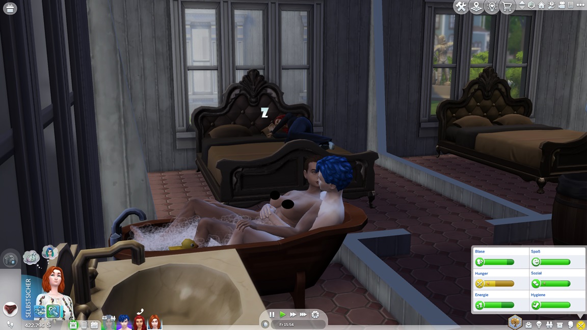 Tatsächlich knirschte da einiges. Aus Gründen, die ich nicht verstehe, wählten die Sims bei autonomem Beischlaf ausschließlich Einzelbetten, obgleich ich versuchte, es ihnen auszutreiben. Und es verpuffte viel...