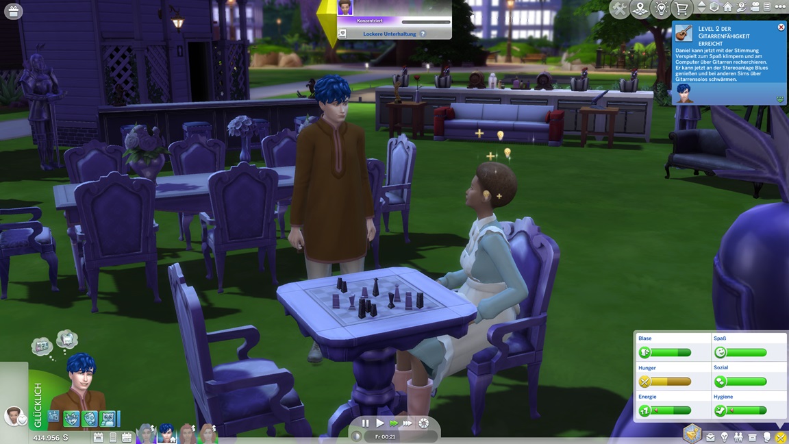 * Daniel startet als Kunstmäzen und muss für das Partnermassen-Bestreben gerade noch einige Sims küssen.