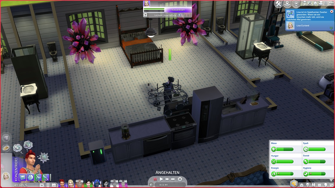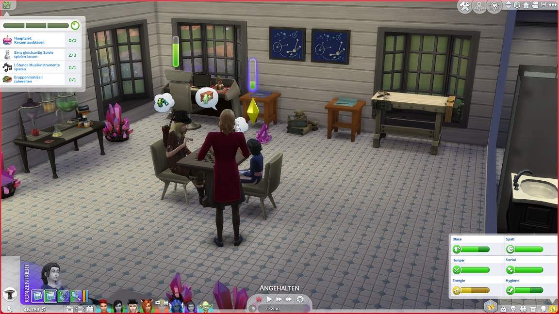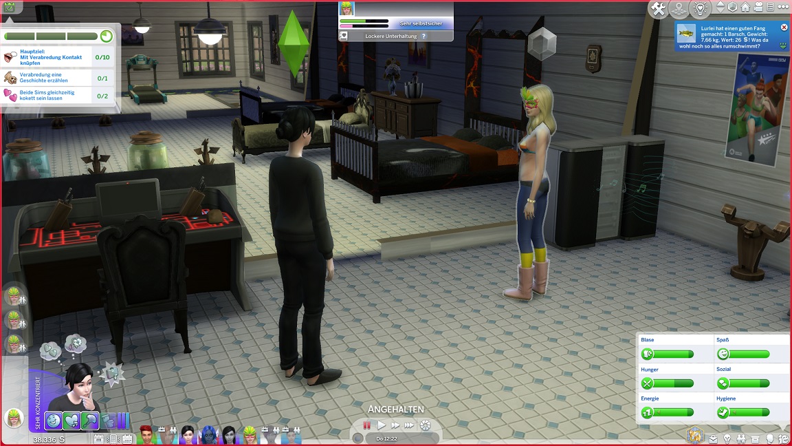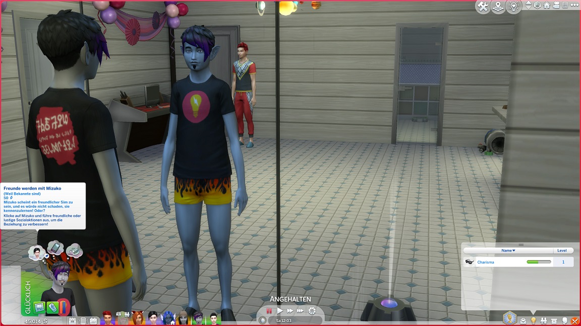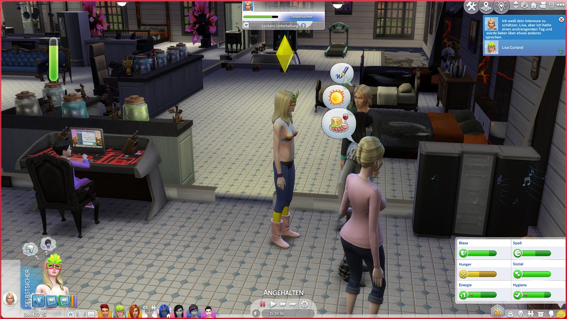 Um ihren Spaßwert aufzufrischen, erinnert sich Andromeda daran, Angeln zu mögen, und versucht es selbst einmal. (Leider schoss ich davon noch kein Foto.) Ein Bug lässt die Reparatur von Stereoanlagen unendlich lange andauern, was Mizuko dazu nutzt, um ihre Geschicklichkeitsfähigkeit für eine Denkblase zu pumpen.