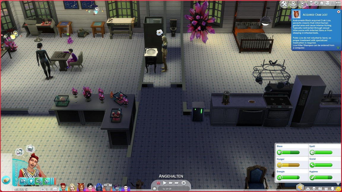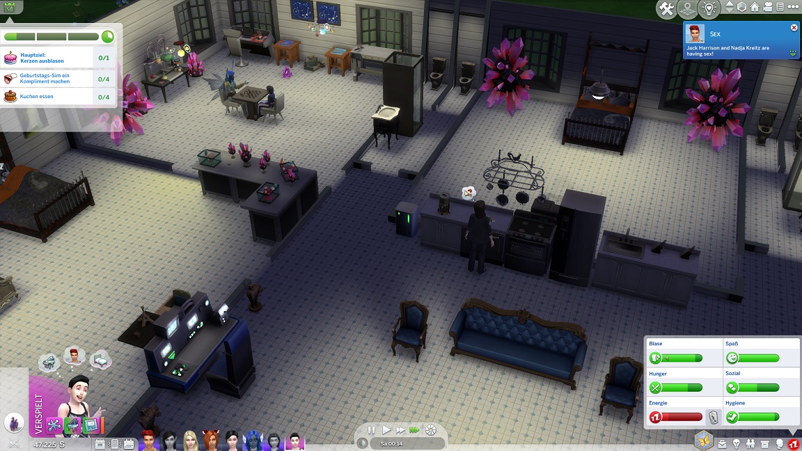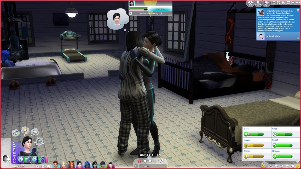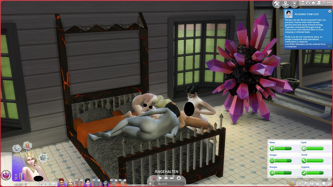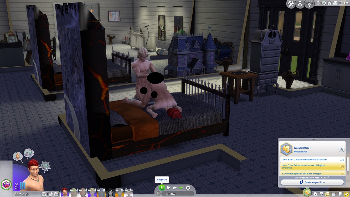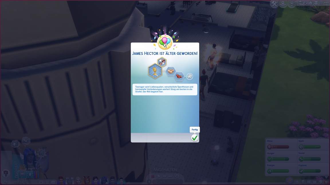 Mit dem zum Denkblasen-Patch erschienenen WickedWhims-Update schrieb dessen Ersteller, dass EA wohl das Alter der Teenager-Sims uminterpretiert hätten (wovon ich bislang nichts merkte, was aber - auch aufgrund fehlender DLCs - nichts heißen muss), sodass er sich nicht mehr damit wohlfühlte, Teenager-Sims den sexuellen Kontakt mit Altersgenossen zu erlauben. Somit können Artjom und James erst in das Treiben einsteigen, wenn sie dasselbe Alter erreichen wie ihre Mütter.