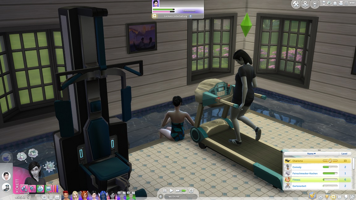 Artjom stellt fest, dass er romantische Musik mag. (Ja, weil gemeinhin nur läuft, was manche mögen, beschränkt sich der gesamte Musikgeschmack der Mannschaft auf zwei Genres.) James ballert am neu für ihn erworbenen Mikrophon seine Comedy-Fähigkeit hoch.