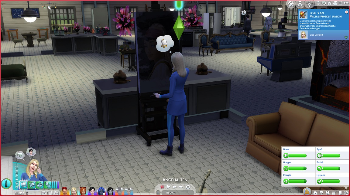 Die Denkblasen treiben Lisa bisweilen dazu, etwas von guter Qualität herzustellen. Das lässt sie wieder malen.