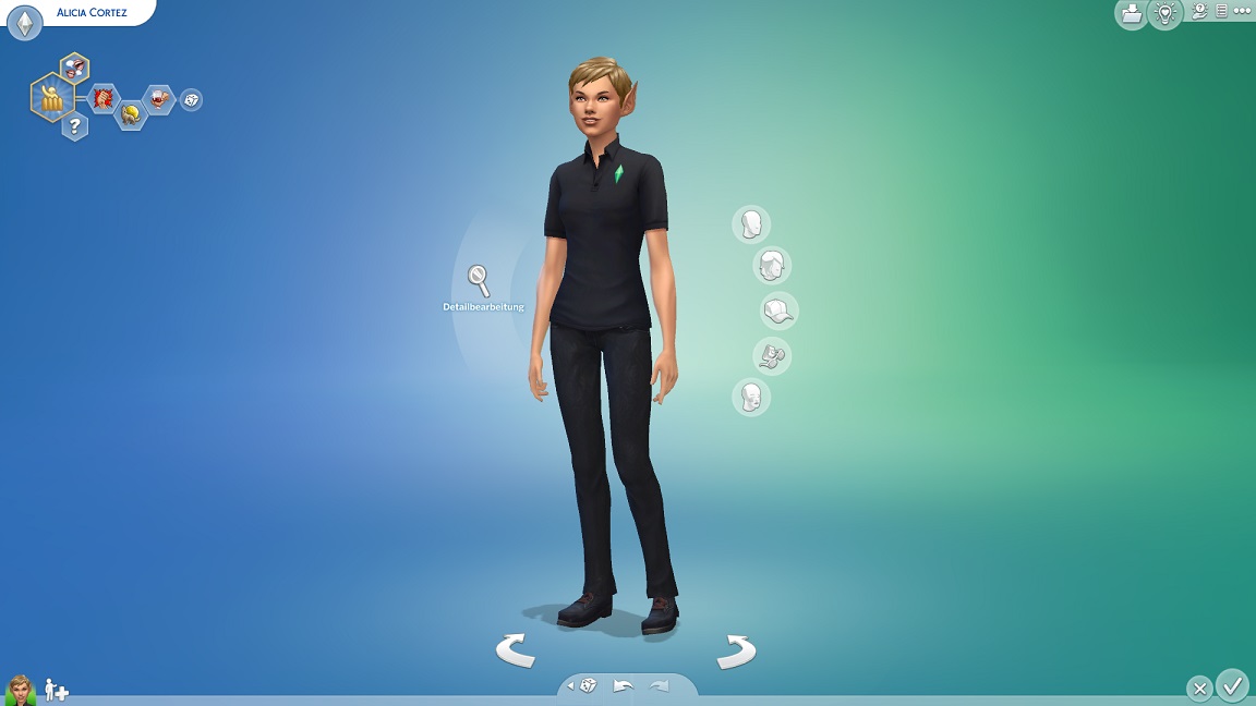 Nachdem ich mit Caitlin und Chaser bereits zwei blonde Elfinnen im Raster hatte, entschied ich mich da schon, für die blonde Elfe Black Sheets auf einen Pixiecut zu setzen. Sie trägt außerdem ein Polo mit Branding der "Black Inc", das sie ihrer Truppe zur Verfügung stellte, um nach außen und innen Zusammenhalt und professionelle Organisation zu kommunizieren.