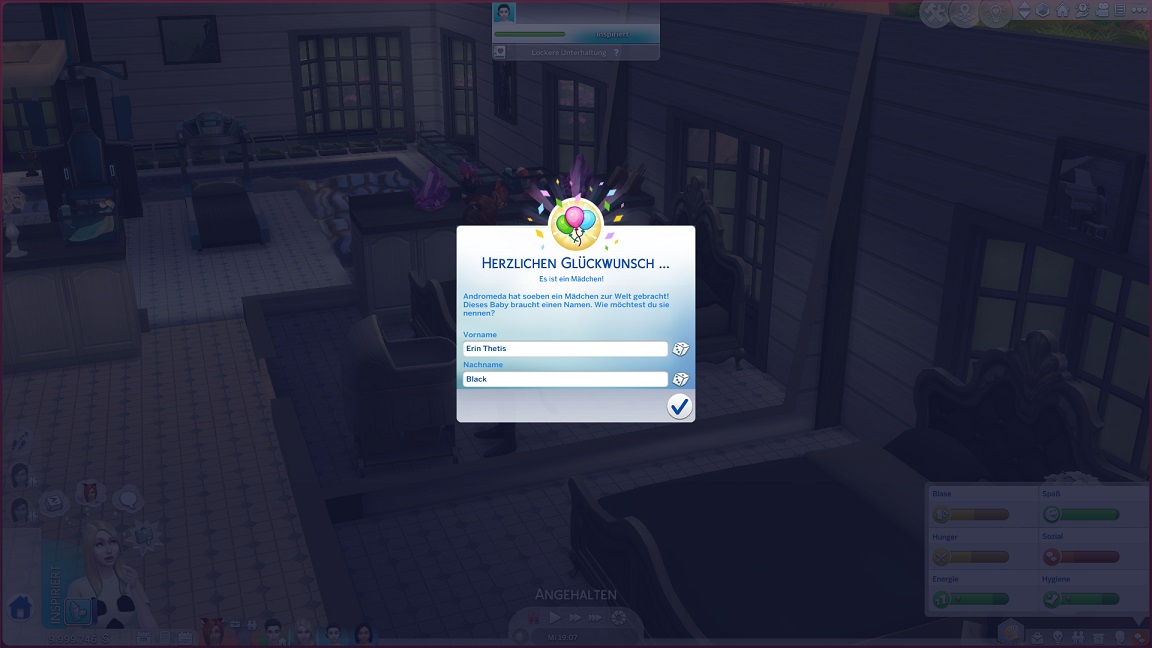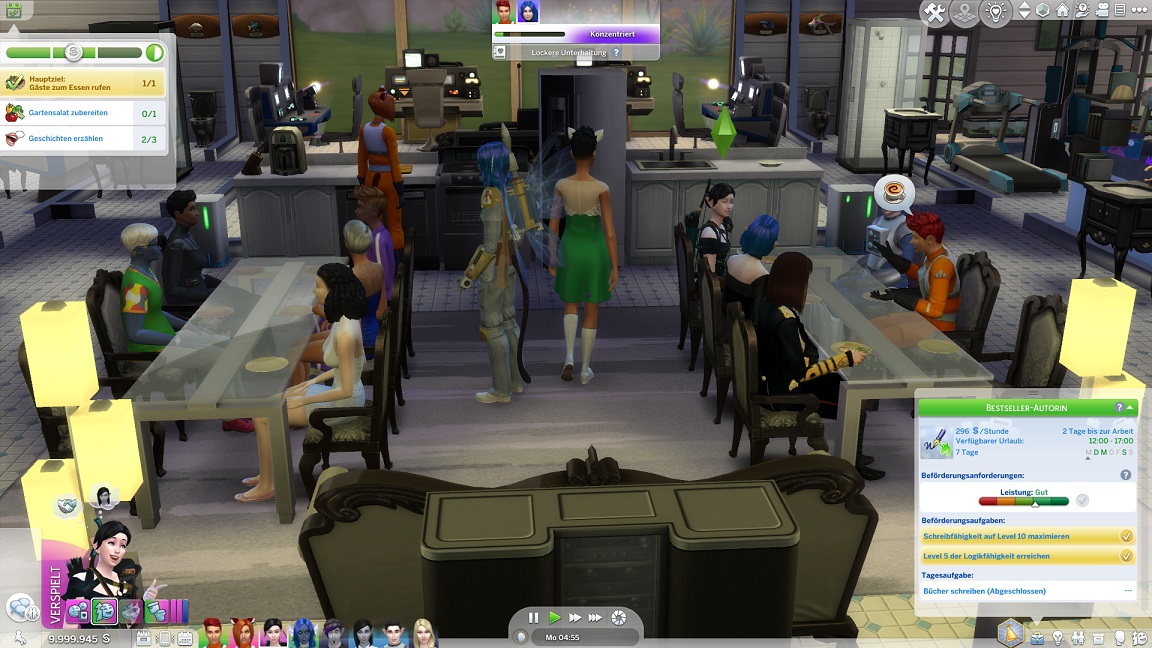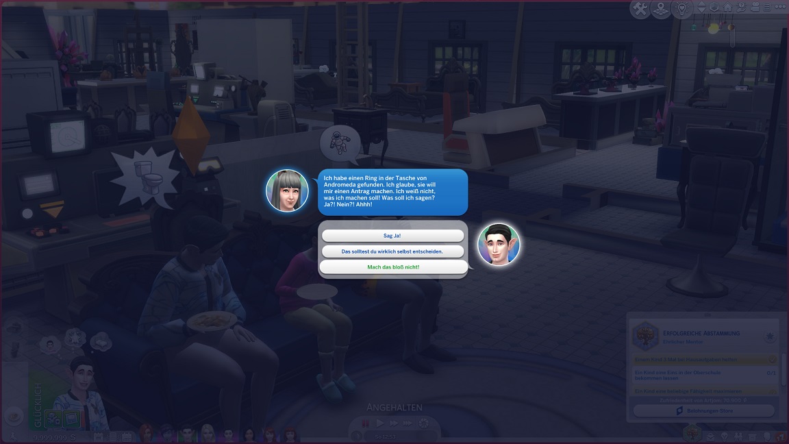 Tatsächlich stand ich schon aus einem anderen Winkel vor der Frage: Da Andromeda nur noch Enkelkinder benötigt und sie kein anderes Mitglied der Kern-Acht berühren, wäre es das Effizienteste, Erin und Stevie durch die Geburtstagspartys bis zum Erwachsenwerden durchzuheizen, sie auszulagern und zur nächsten Imprägnierungs-Party mit einzuladen. So faschistisch und menschenverachtend möchte ich allerdings nicht werden und deshalb erklärte ich bereits ein "mindestens eine Bestrebung in jeder Phase" zur Norm. Diese zukünftigen Angehörigen erhalten eine Ausbildung zu Besatzungsmitgliedern, bevor sie sich einreihen...