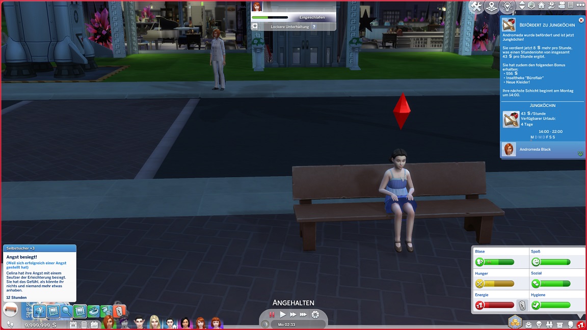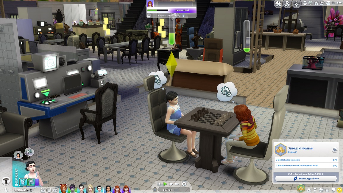 Tatsächlich plante ich, Celina aufzuwerten, doch dann wurde ich neugierig darauf, was eine schulische Aufwertung bedeutet und inwiefern diese für die Bestrebung der Väter bereits genügt. So lasse ich sie stattdessen auch dem Geist folgen, wodurch sie wie ihre "Schwestern im Geiste" Erin und Stevie Schach spielt. (Echte Verwandschaftsbeziehung: Sie besitzen mit Lurlei dieselbe Großmutter.)