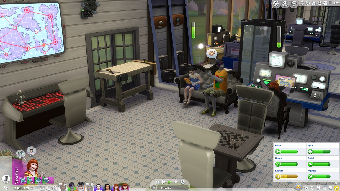 So erfährt der Maschinenraum eine Umgestaltung und erhält statt des Bücherregals einen freien Schreibtisch.