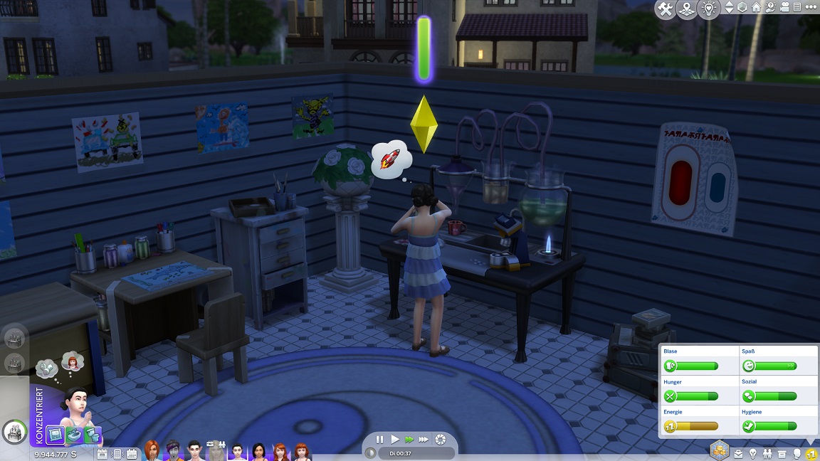 Nadja nickt und lässt den Würfel entscheiden: Sie möchte noch ihre künstlerische Seite ausforschen.