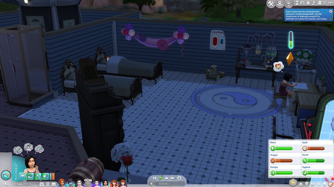 Erin stellt beim Fähigkeitenpumpen mit Videospielen fest, dass sie diese mag. Celina, die bereits beide Hausaufgaben abhaken konnte, da ihrer als Zweierschülerin Zusatzaufgaben offen stehen, werkelt am nächsten Schritt und mischt Tränke. Dafür wurde die Aura des Raums umgeschaltet.