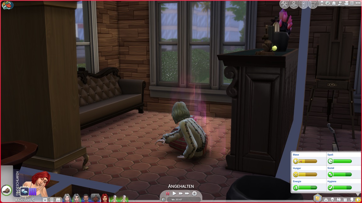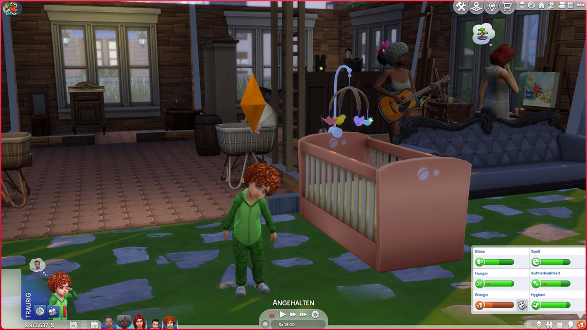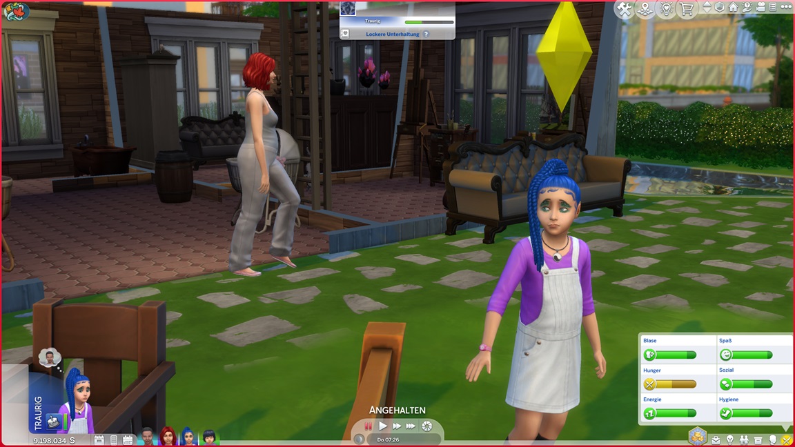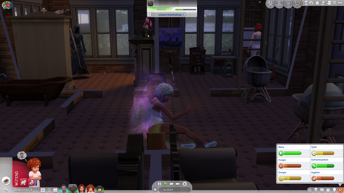 Nun muss sich Helga um zwei Kinder kümmern, während Charlotte ihre Gemälde pumpt, und es zeichnet sich ab, dass es schwer wird, nicht zuletzt aufgrund der durch Todesfälle hervorgerufenen Traurigkeit mit den einhergehenden Lernmali (von den deswegen fehlenden Boni ganz zu schweigen). Für die Schwarzhaarige sieht es gut aus, für die Rothaarige (nicht zuletzt aufgrund des geringeren Kleinkindbonus)... nicht.