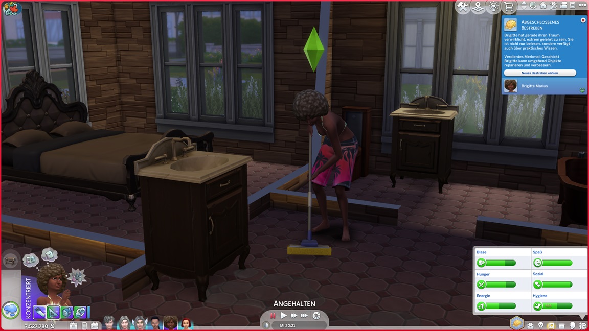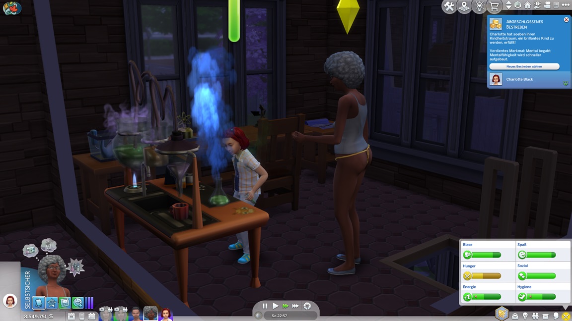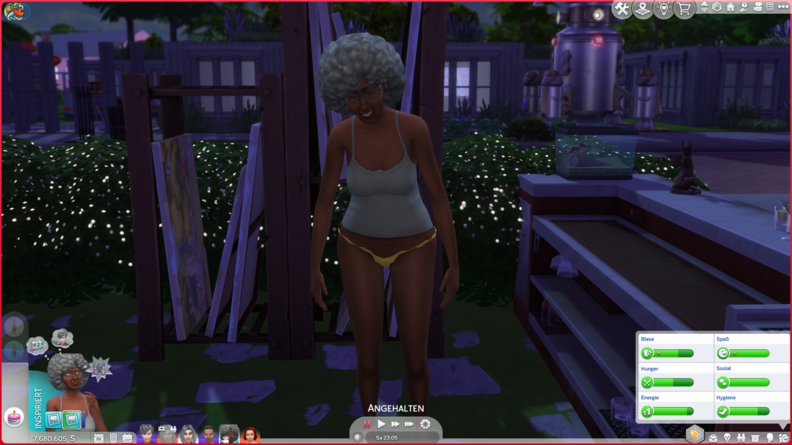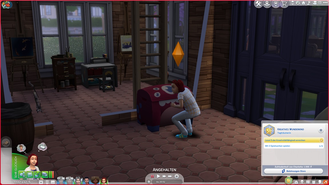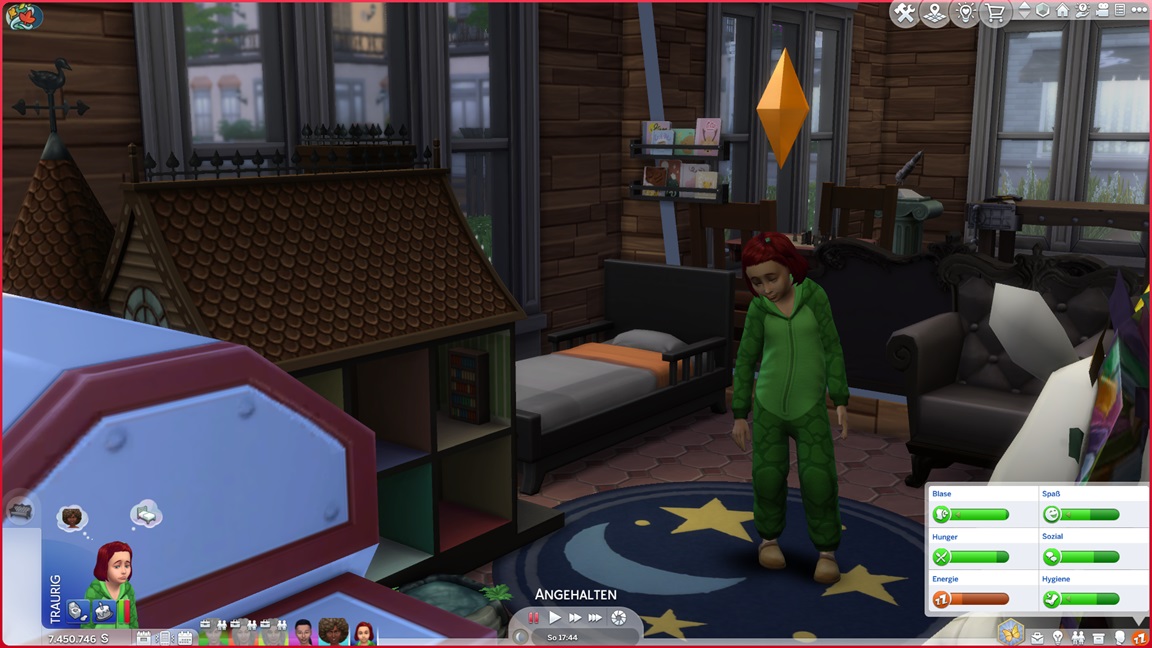 Nun muss sich Helga um zwei Kinder kümmern, während Charlotte ihre Gemälde pumpt, und es zeichnet sich ab, dass es schwer wird, nicht zuletzt aufgrund der durch Todesfälle hervorgerufenen Traurigkeit mit den einhergehenden Lernmali (von den deswegen fehlenden Boni ganz zu schweigen). Für die Schwarzhaarige sieht es gut aus, für die Rothaarige (nicht zuletzt aufgrund des geringeren Kleinkindbonus)... nicht.