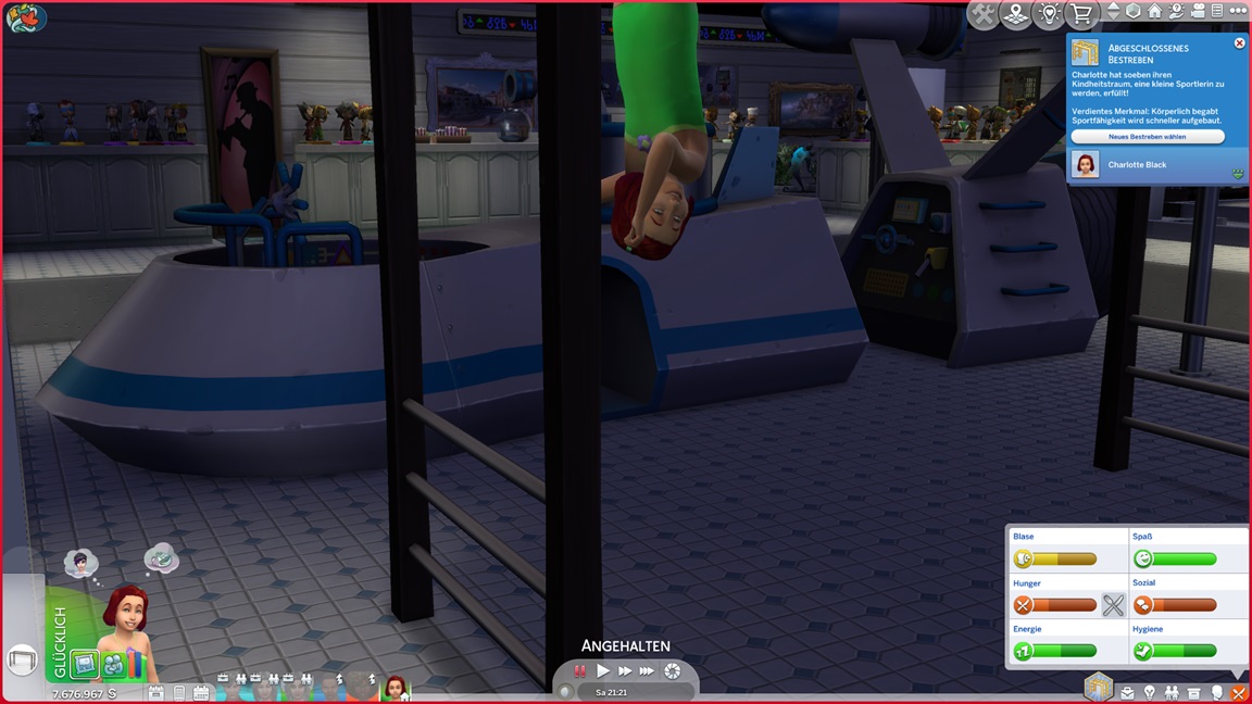 Charlotte muss Leute kennenlernen. Sie entscheidet sich für den kurzen Weg und reist ins Fitnessstudio.