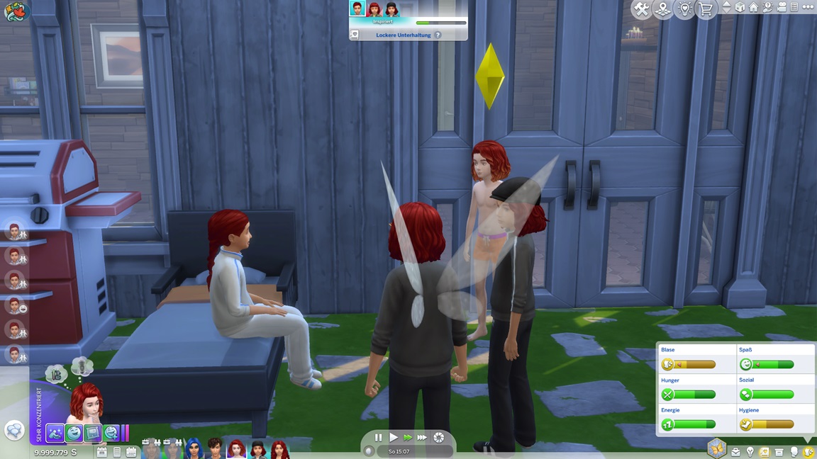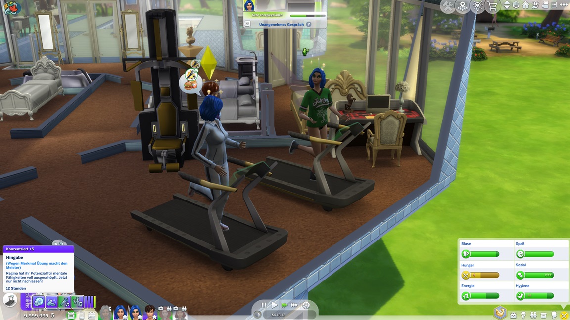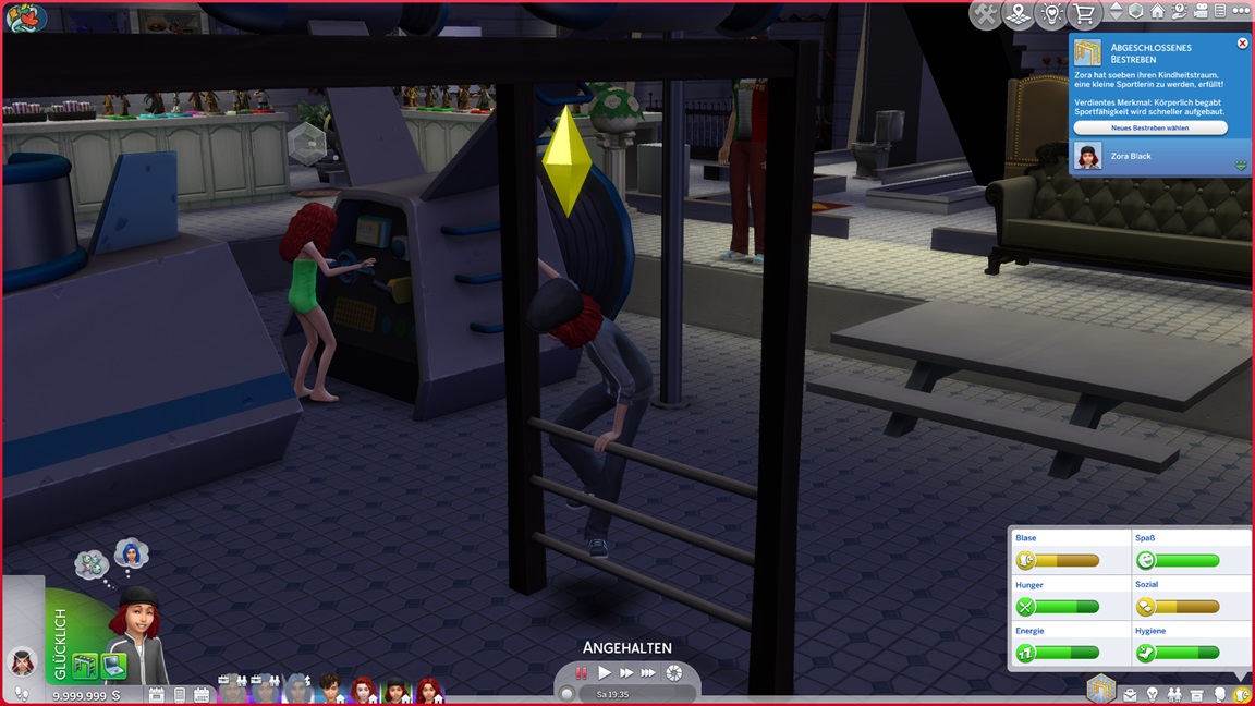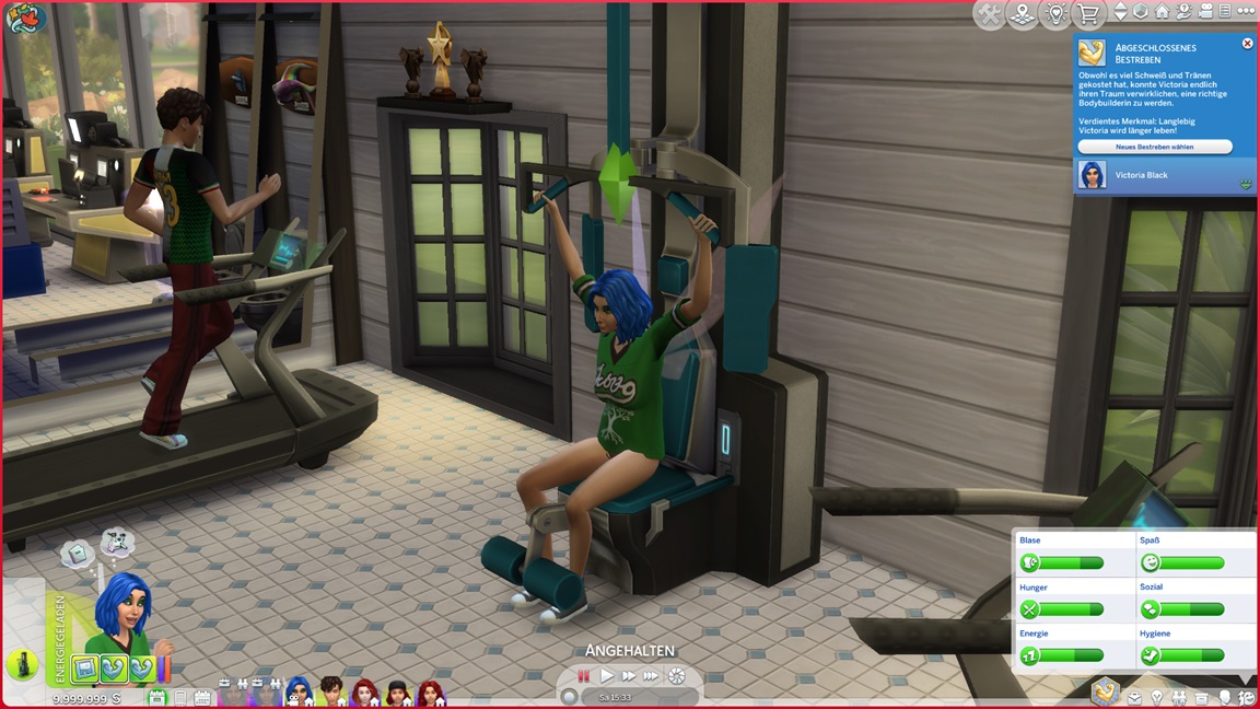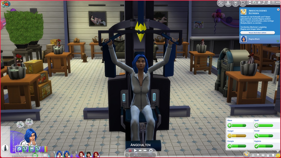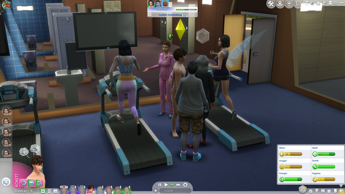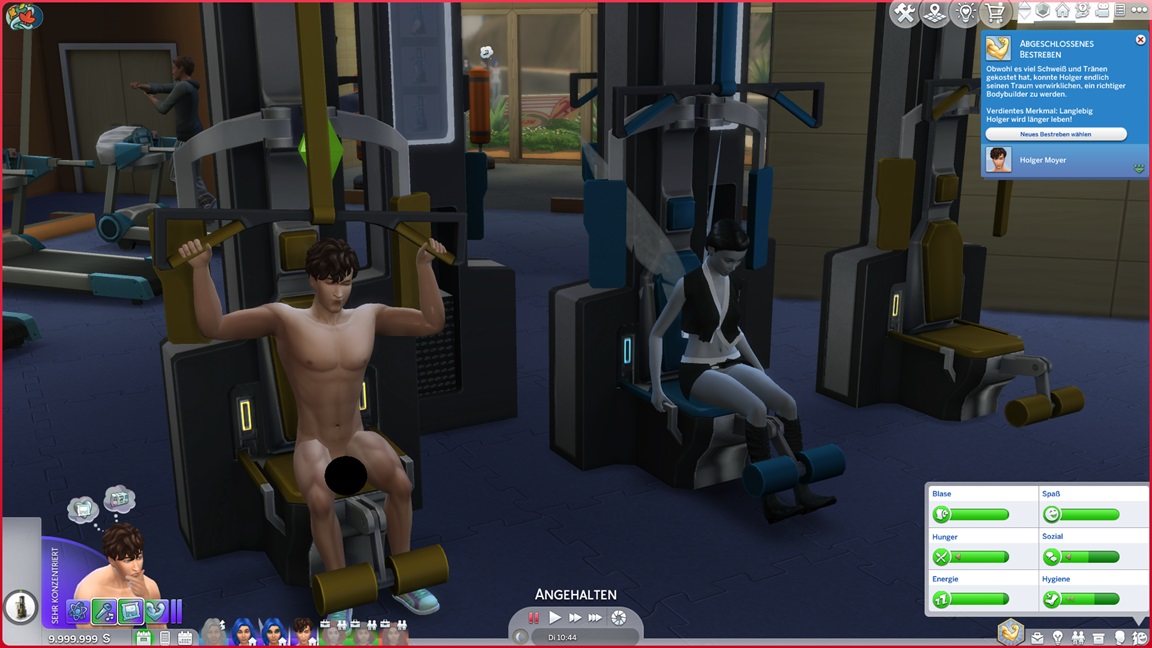 Zora stellt fest, dass sie Fitness mag. Das Erwachsenentrio besucht das Fitnessstudio, während die Kinder in der Schule weilen. Das Gepumpe geht voran.