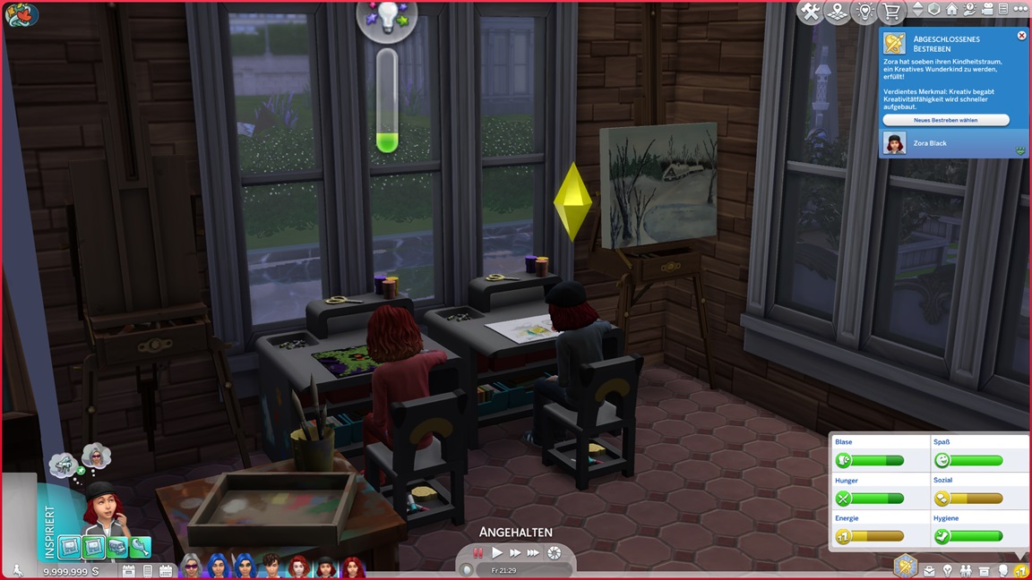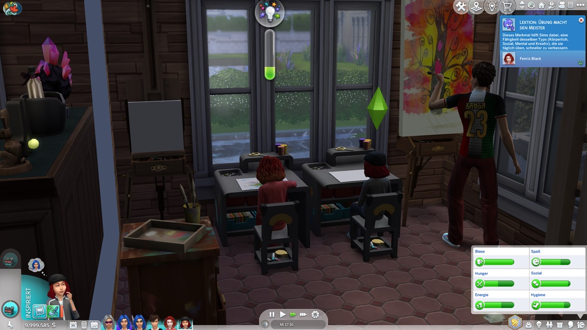 Er fährt mit Malerei fort. Victoria schließt ab und wählt Comedy.