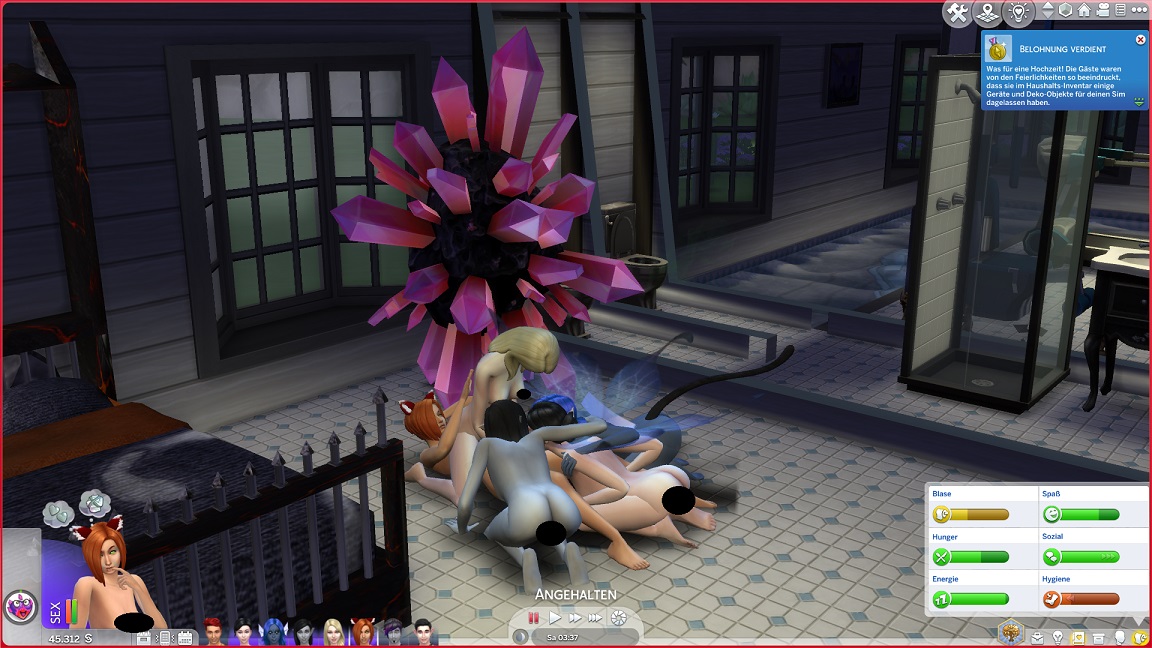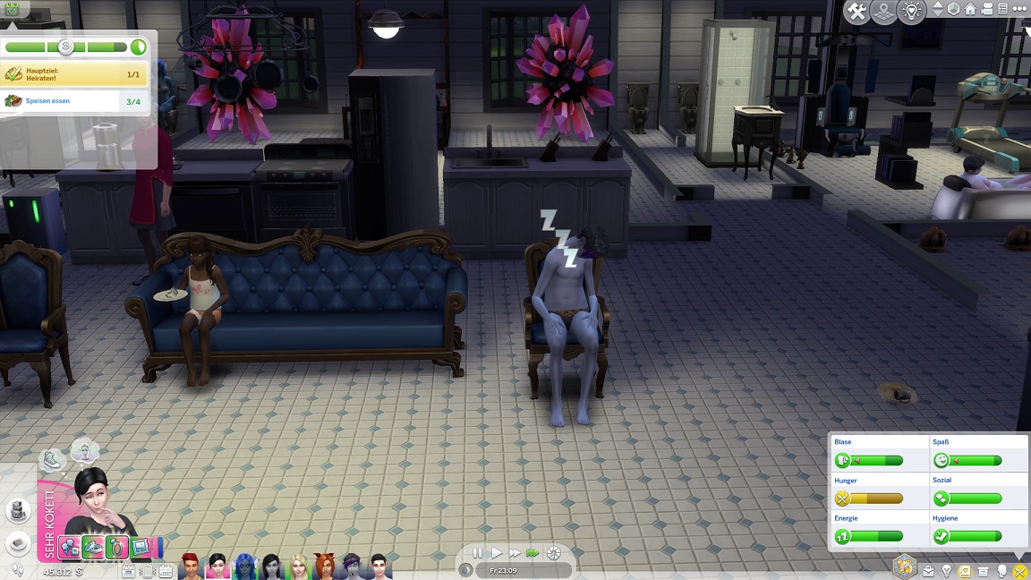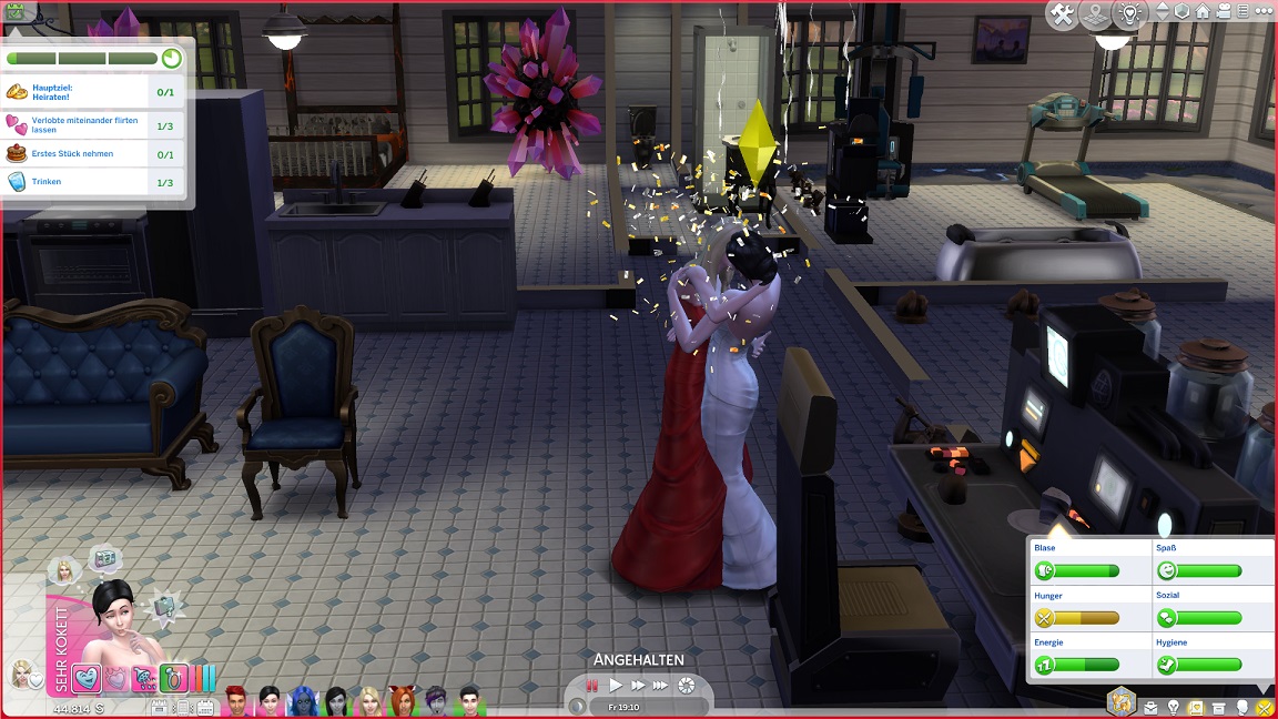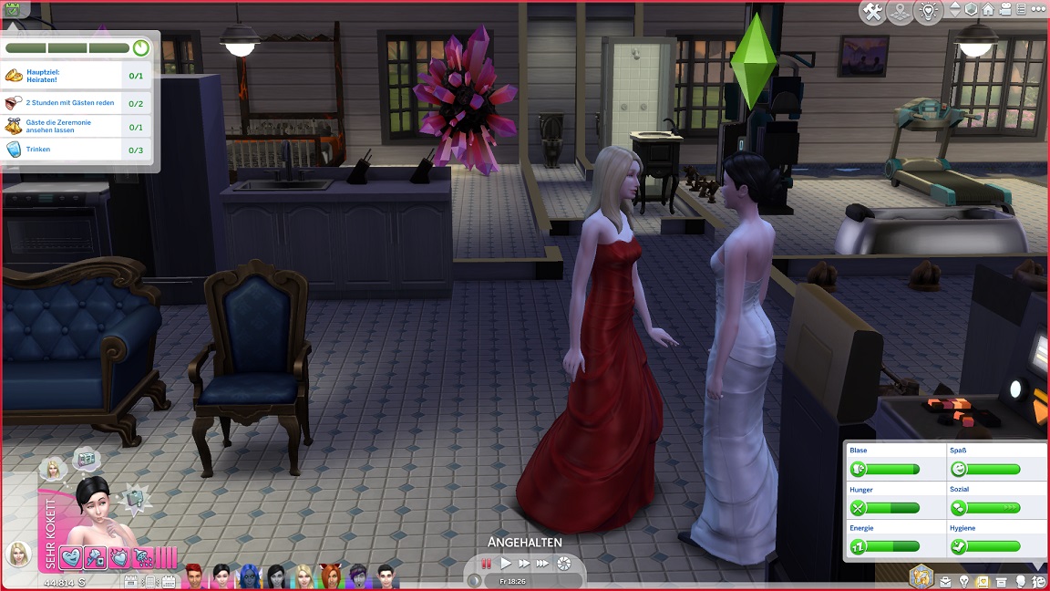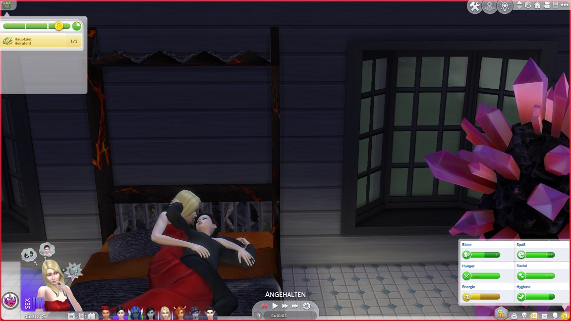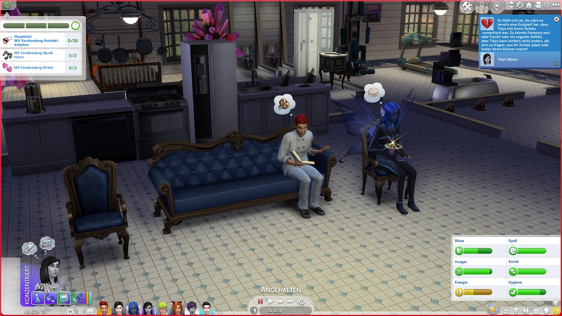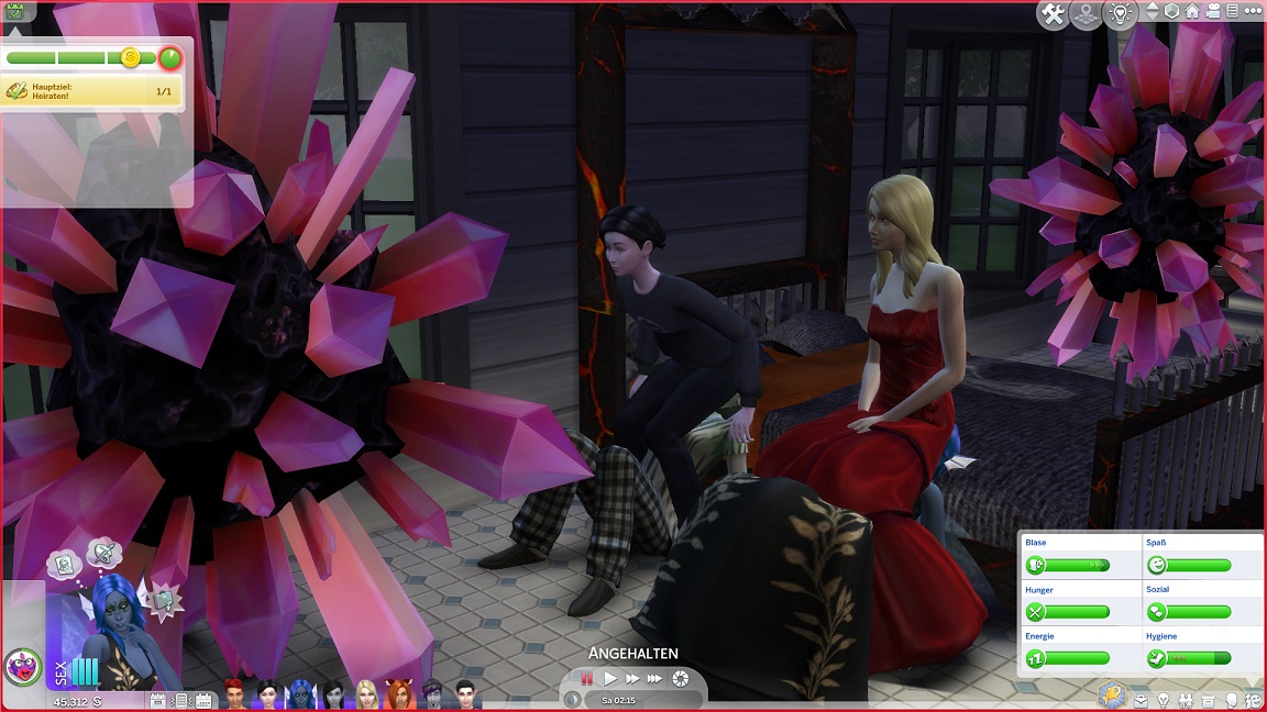 Mizuko muss ja für ihr Bestreben heiraten. Ich hätte sie gerne mit Miral verkuppelt, um deren Auftritt einen Sinn zu geben, doch sie kam einfach nie am Haus vorbei und ich wollte Mizuko keine Ausflüge unternehmen lassen, die auf Spieler- statt Charakterwissen fußen. Bei Lisa handelt es sich um ihre zweitlogischste Wahl (sie möchte aber Telys auch nicht in die Scheidung treiben) und auch wenn ich Sims- und Axanar-Pläne gerne getrennt hätte, tut sie auch nicht weh.