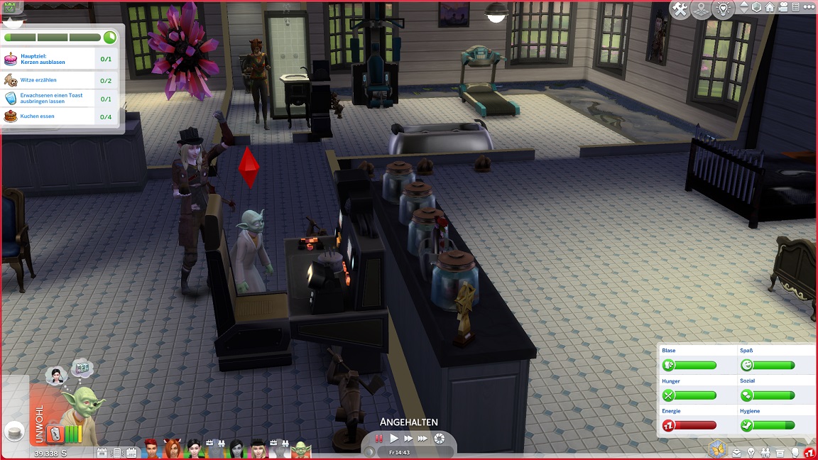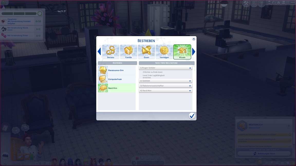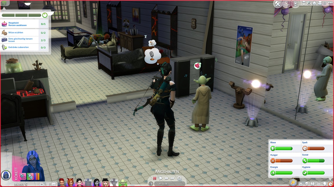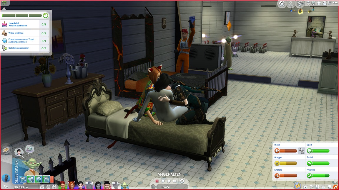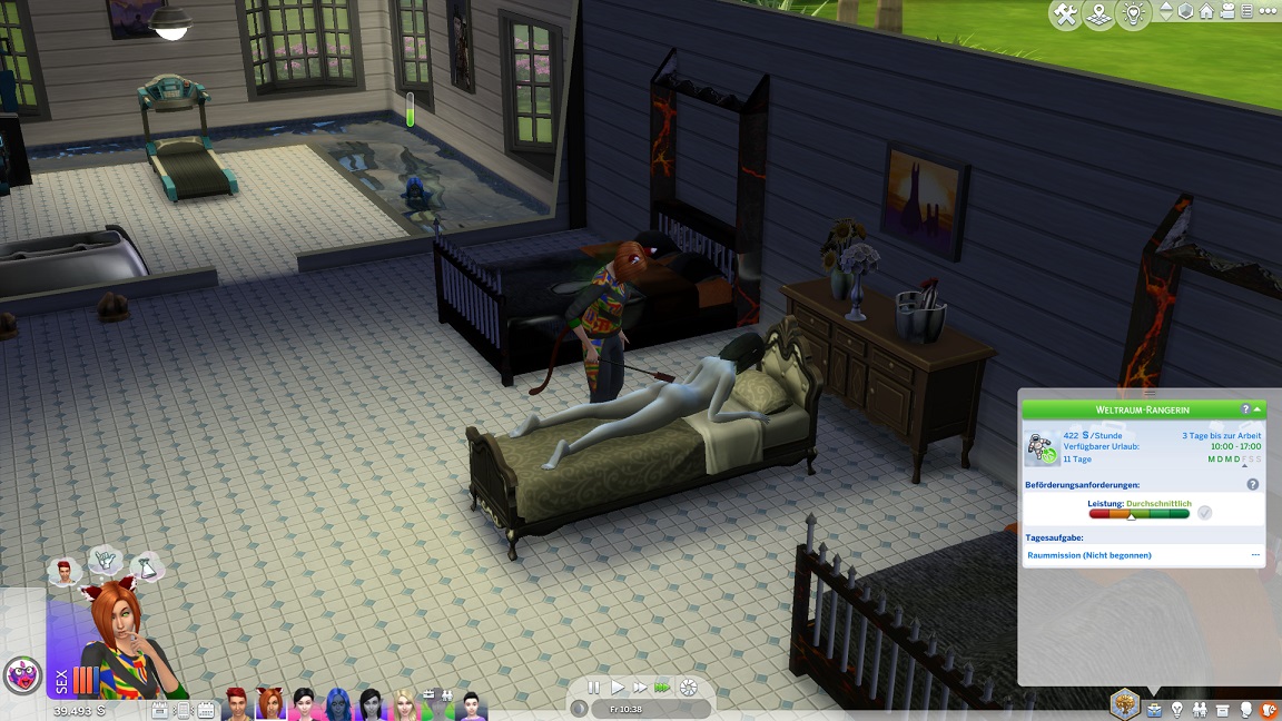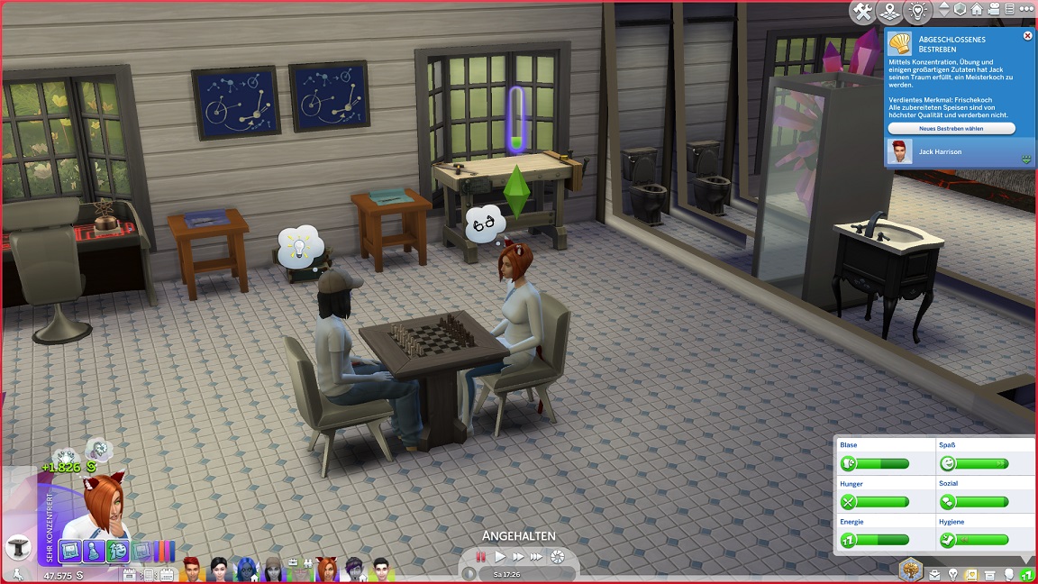 Mizuko muss ja für ihr Bestreben heiraten. Ich hätte sie gerne mit Miral verkuppelt, um deren Auftritt einen Sinn zu geben, doch sie kam einfach nie am Haus vorbei und ich wollte Mizuko keine Ausflüge unternehmen lassen, die auf Spieler- statt Charakterwissen fußen. Bei Lisa handelt es sich um ihre zweitlogischste Wahl (sie möchte aber Telys auch nicht in die Scheidung treiben) und auch wenn ich Sims- und Axanar-Pläne gerne getrennt hätte, tut sie auch nicht weh.