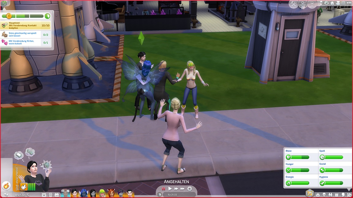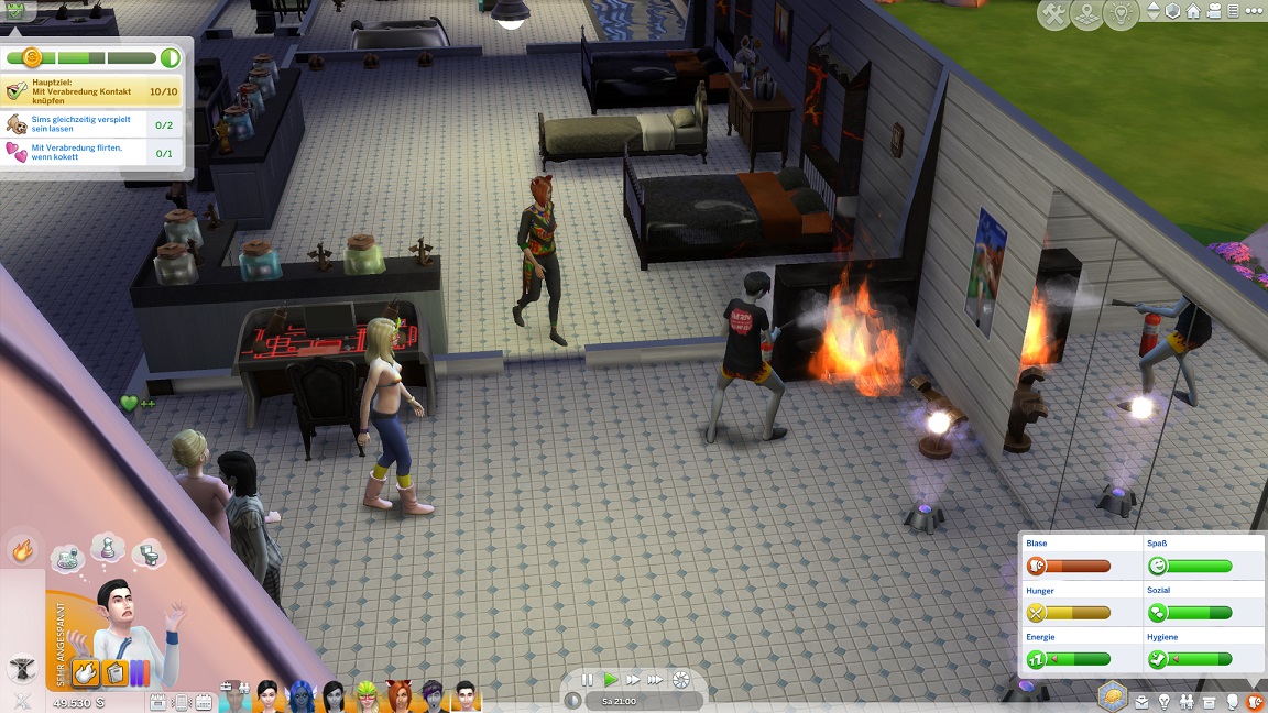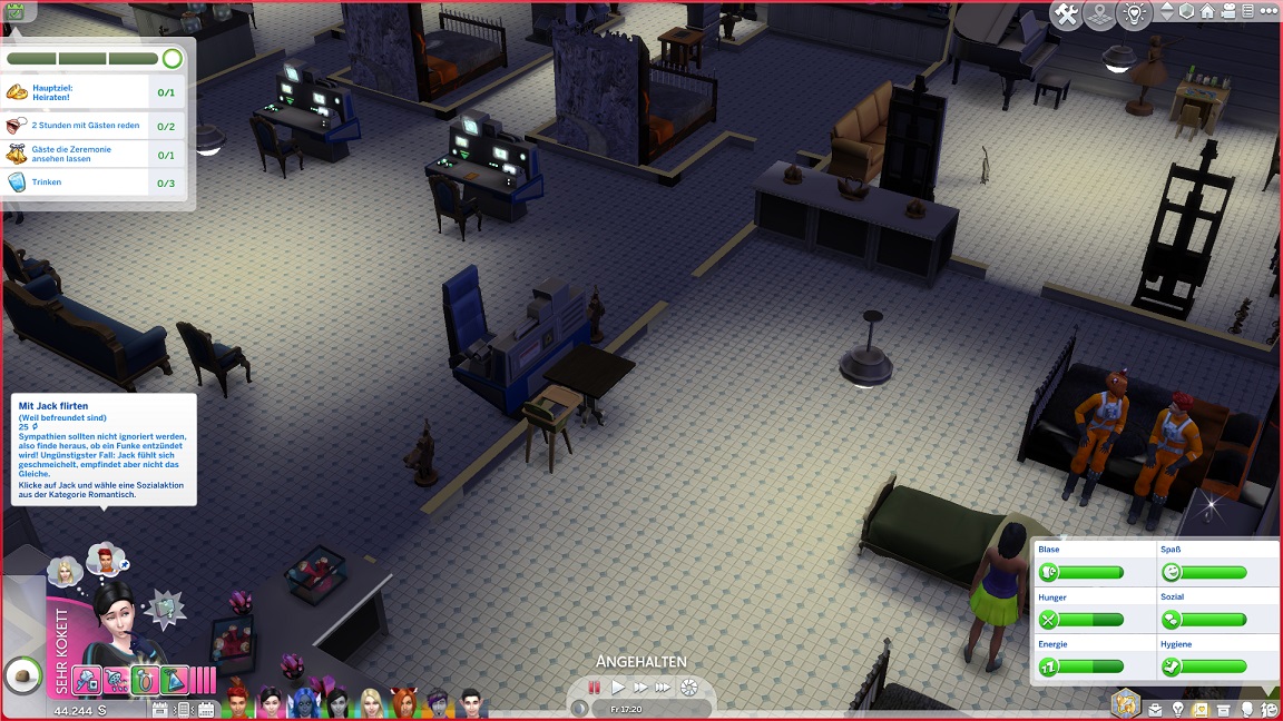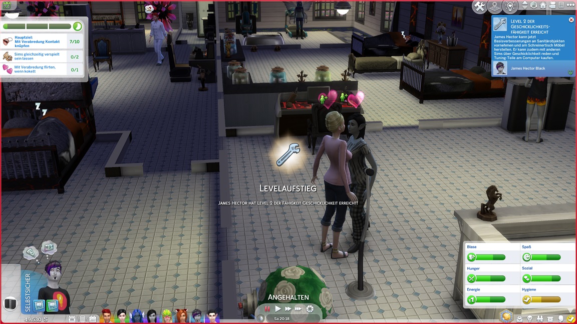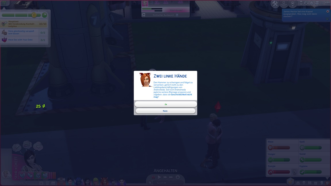 Erst nach dem Kostümwechsel erkennt das Spiel an, dass immer noch eine Verabredung stattfindet. Telys kümmert sich entsprechend um die Nachbarin, während James schraubt.