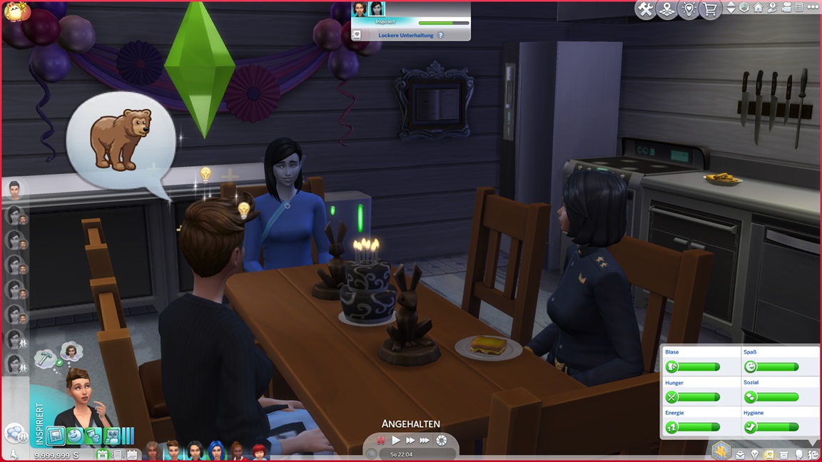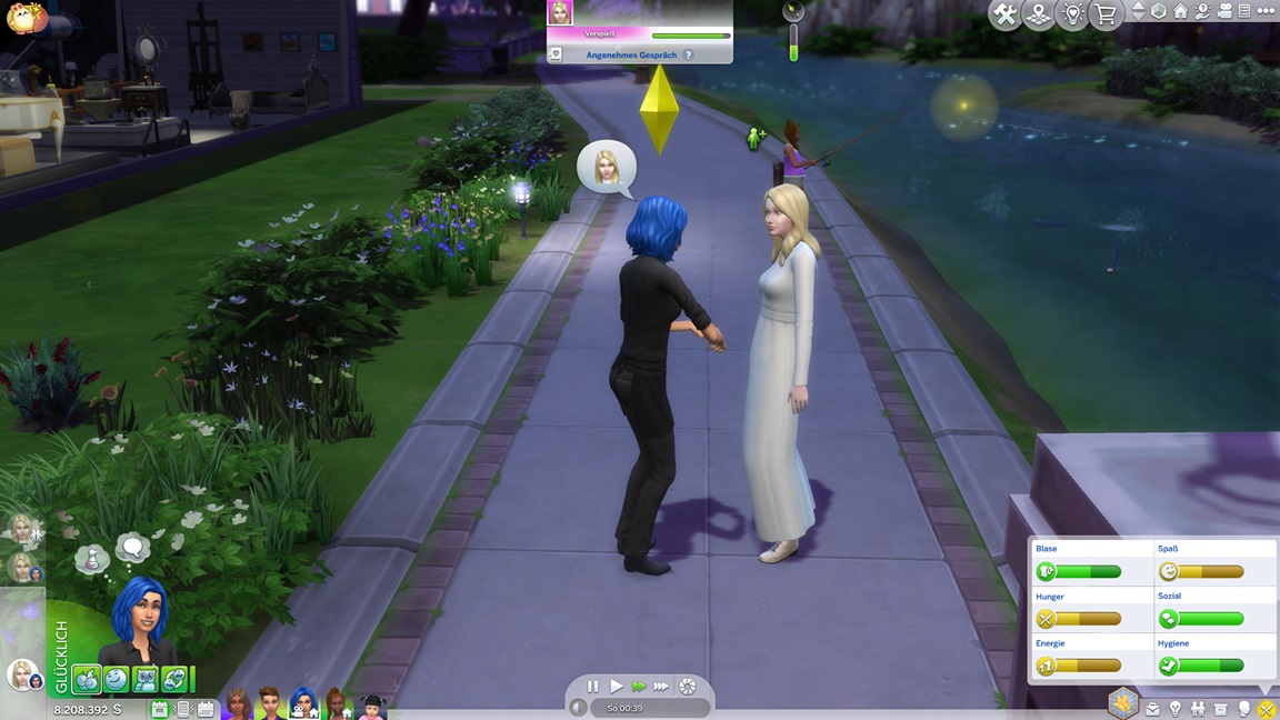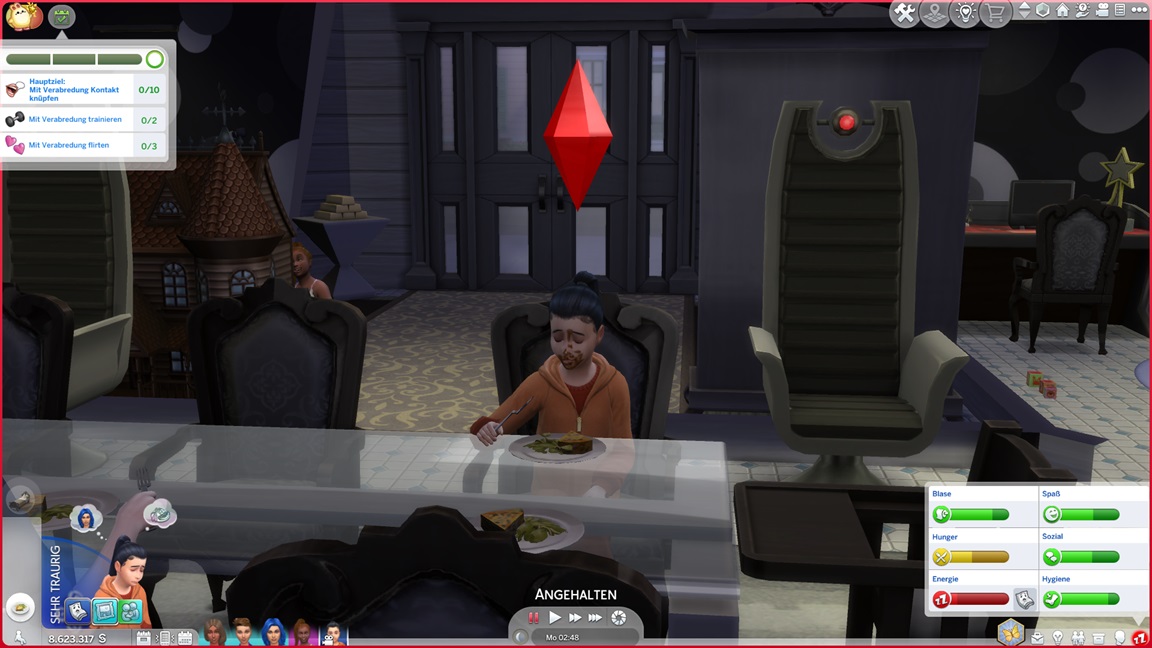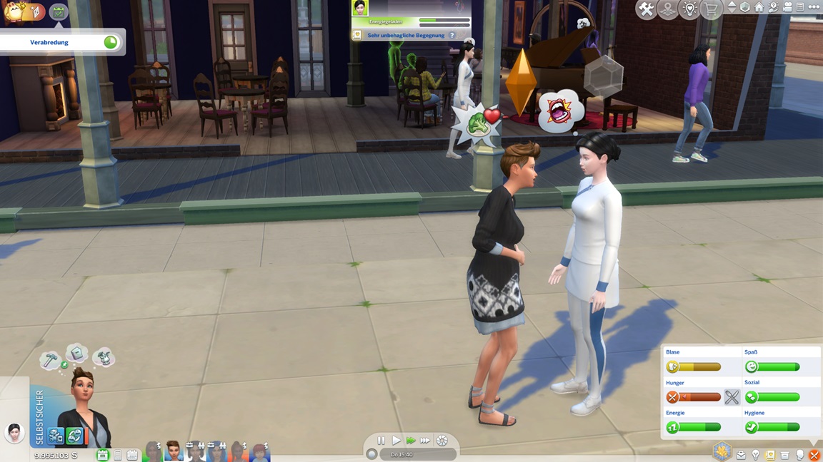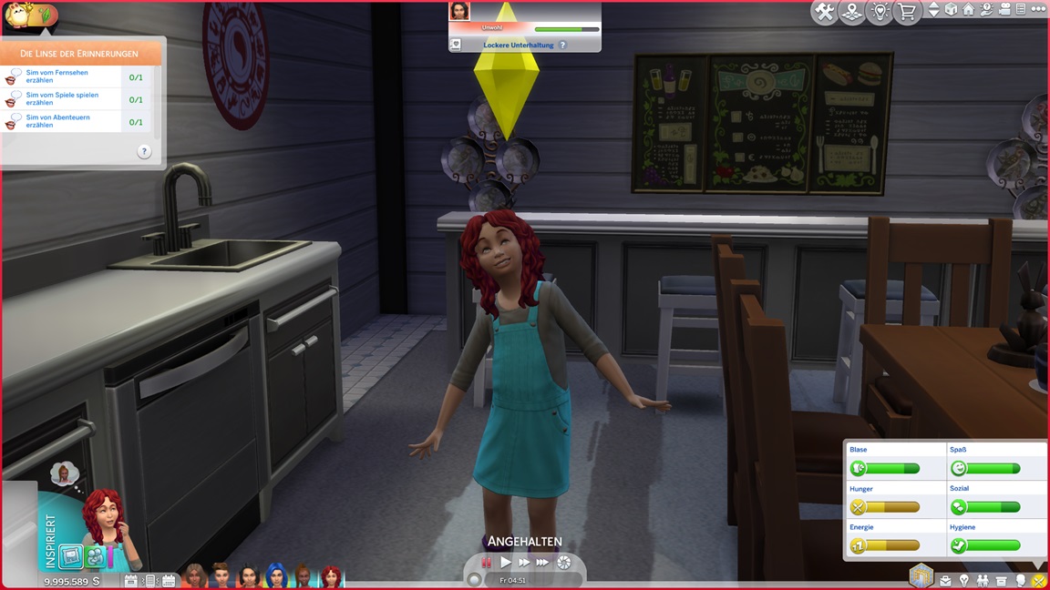 Als mir das Spiel beim Umgang mit Frederike zu viele Steine in den Weg läuft, jage ich sie vorschnell durch den Kuchen und füge den vollen Bonus per Konsole hinzu. Dann wiederhole ich es, als es mit Kleinkind direkt so weitergeht. Während nach dem Leon-Fehlschlag nun doch Betty und Daniela zu einem Date aufbrechen, präsentiert sich Frederike - bildhübsch, aber noch mit dem Schmutz der Säuglingsfütterungen, die mit dem nächsten Laden verschwinden wird.