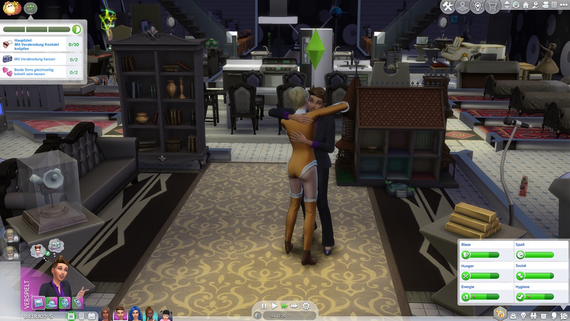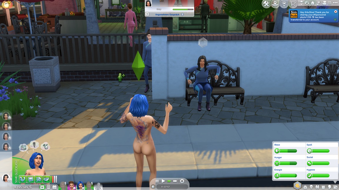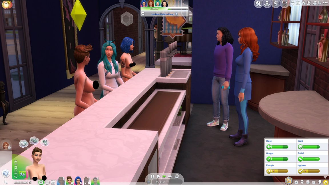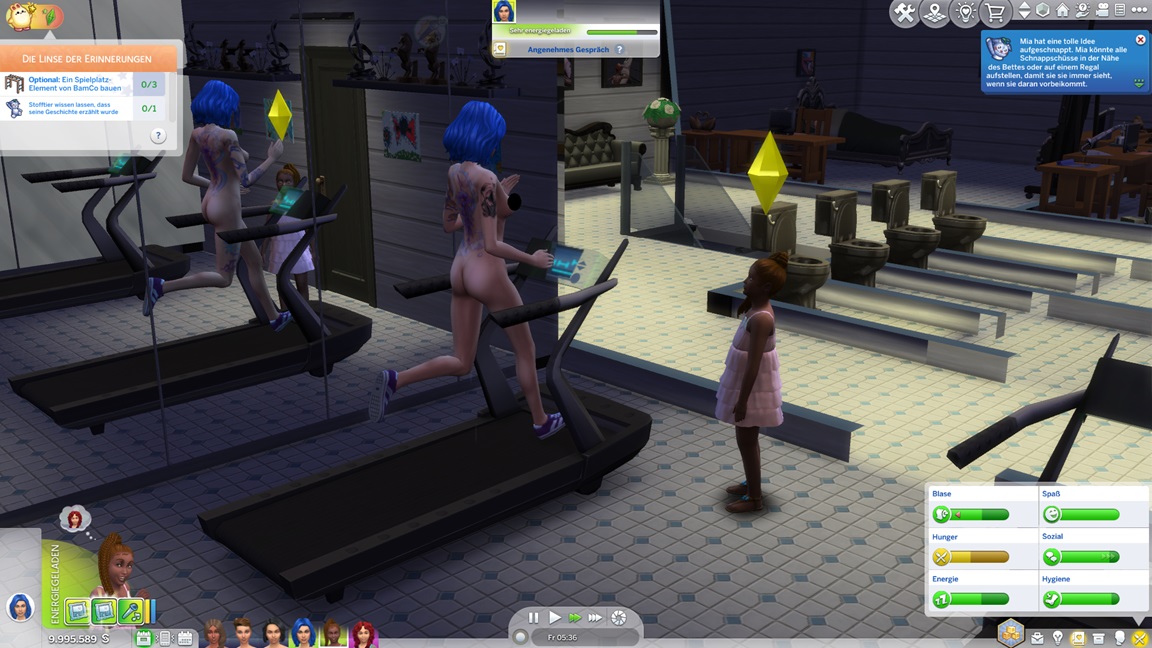 Mia stellt fest, dass sie Popmusik mag. Mit der neuen Stufe wartet eine neue Aufgabe auf Betty: Sie legt einen SimsHub-Kanal an und bittet Gäste um nackte Haut, wobei sie oft offene Türen einrennt.