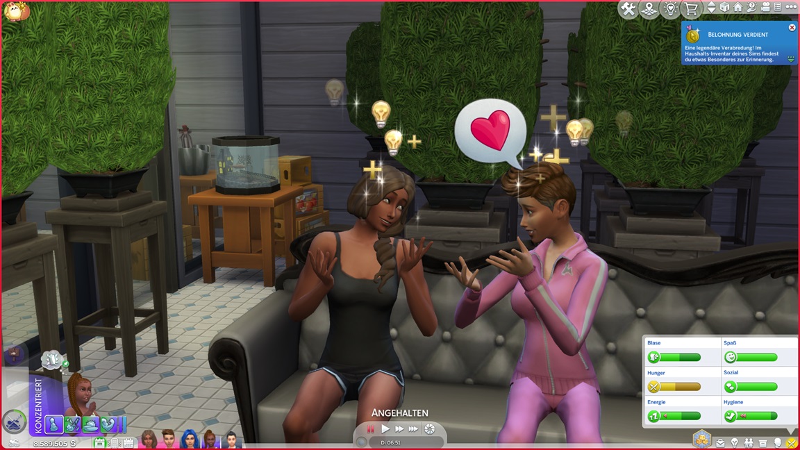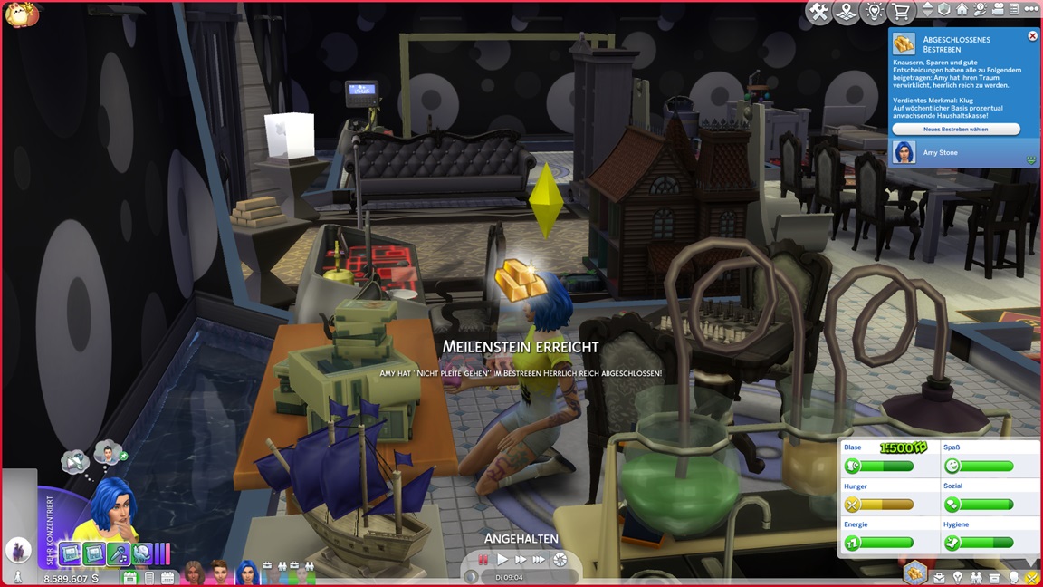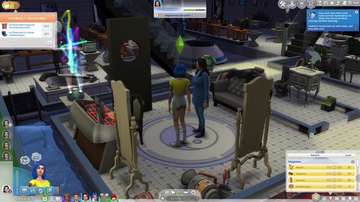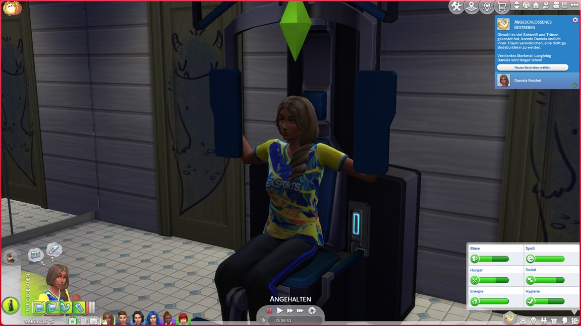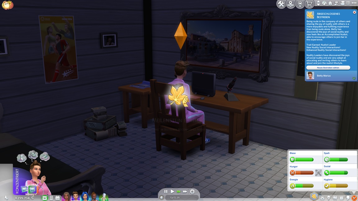 Mia stellt fest, dass sie Popmusik mag. Mit der neuen Stufe wartet eine neue Aufgabe auf Betty: Sie legt einen SimsHub-Kanal an und bittet Gäste um nackte Haut, wobei sie oft offene Türen einrennt.