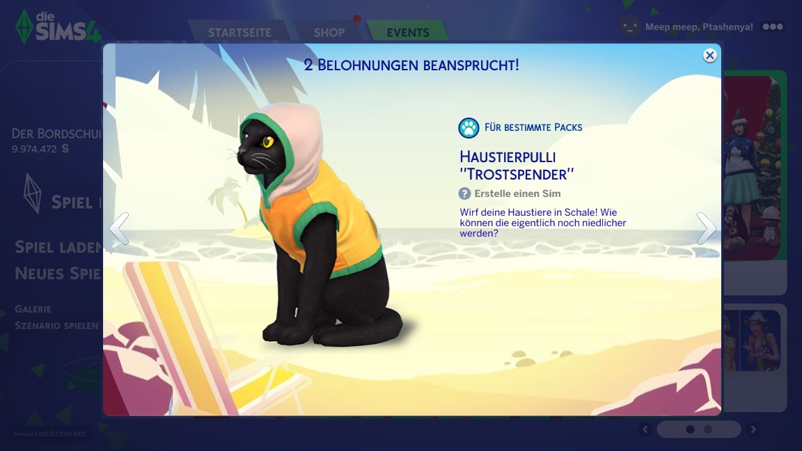 Es gibt ein neues Event, das am 16. Dezember startet. Die Belohnungen schalten nicht mehr im Wochentakt frei, sondern wurden feiner aufgedröselt, und auch ansonsten werde ich aus dem Text nicht ganz schlau, wie es funktioniert. Aber ich plane eine neue Episode...
